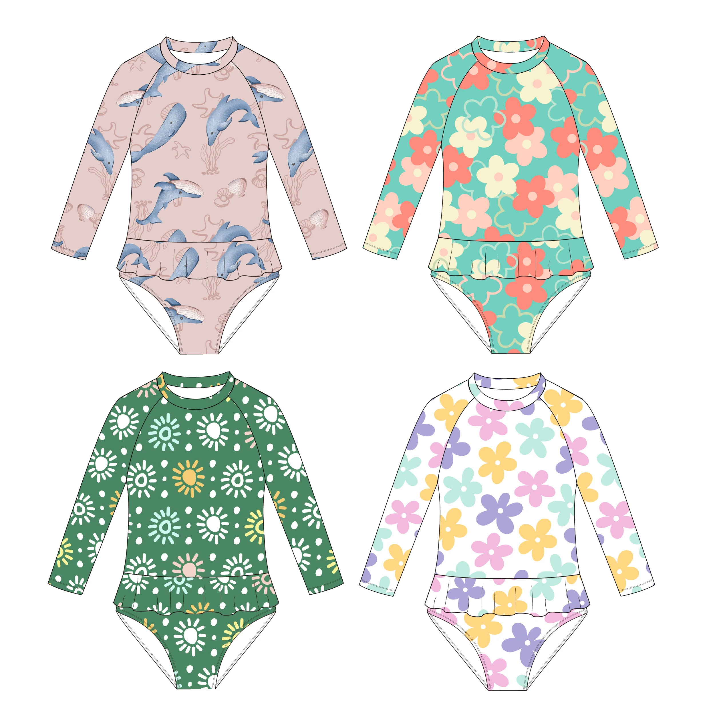 Girls One Piece Swimsuit Cute Toddler Swimwear with UPF 50+ Sun Protection Floral Rash Guard Bathing Suit for Baby & Kids