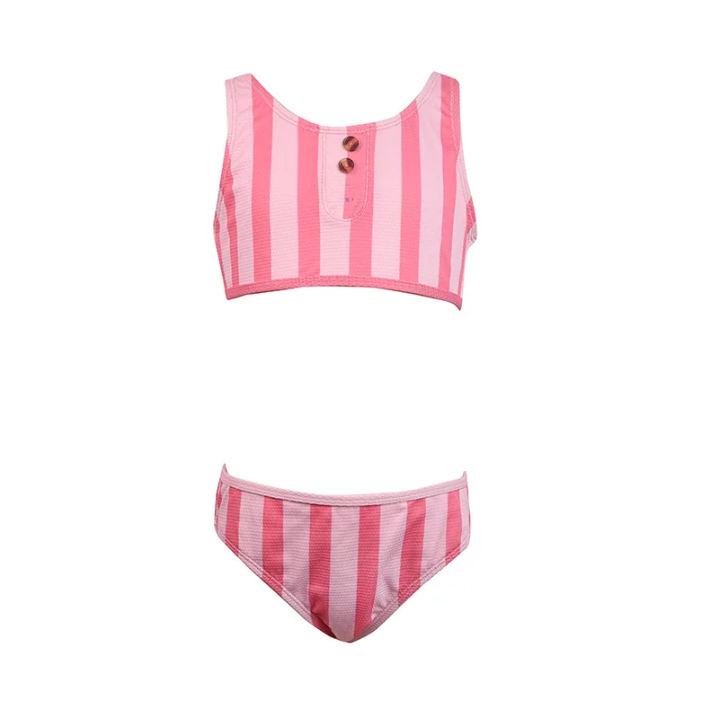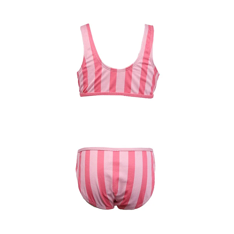Summer Fashion New Design 2-Piece Kids Swimming Bikini Sets Cute Striped Pattern Clothing for 13-Year-Old Girls