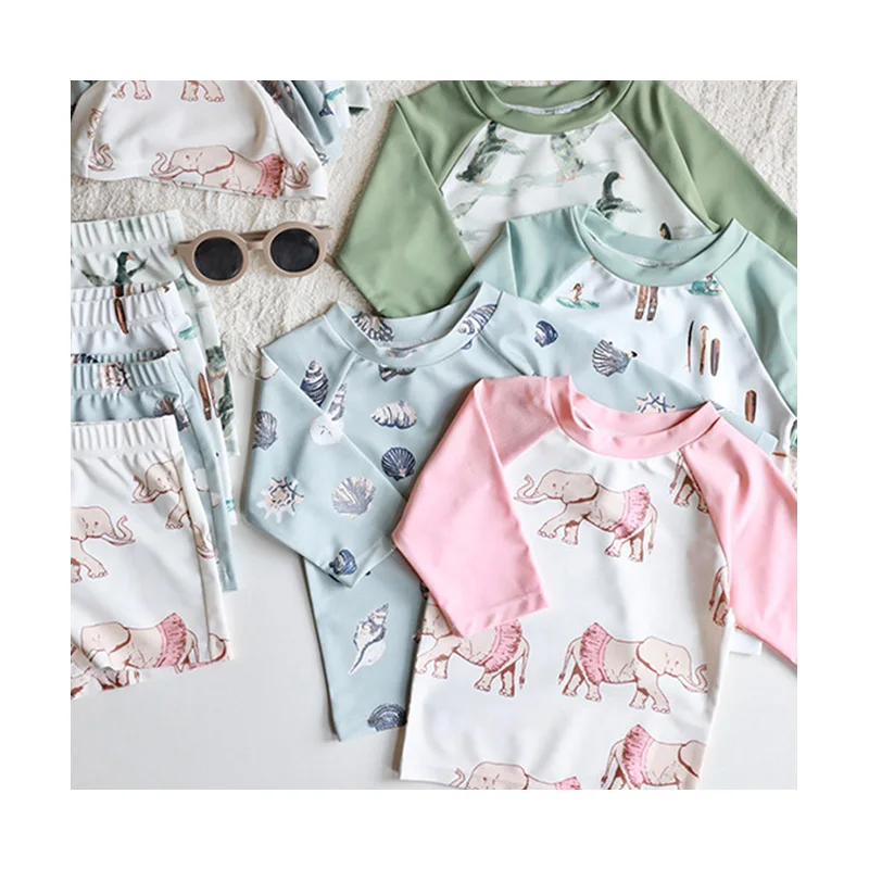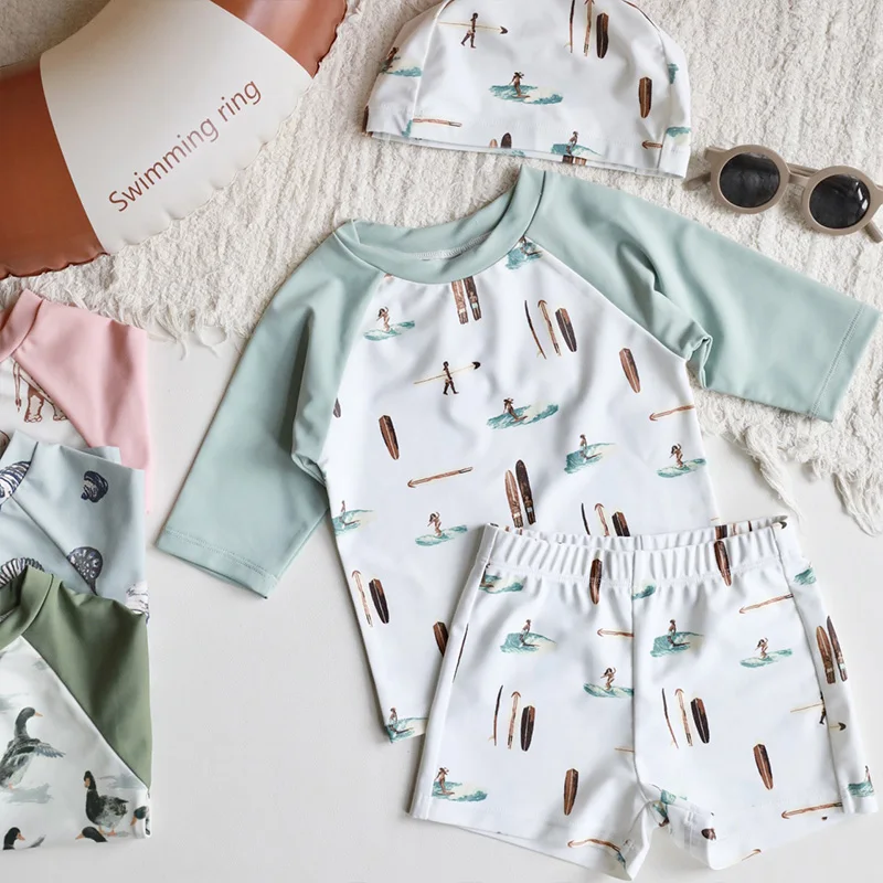 OEKO-TEX Cute Coconut Tree Print Boys' Swimwear One Piece Zipper Short Sleeve Swim Brief for Children Beach Vacation Swimming