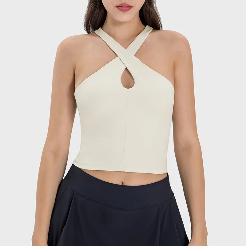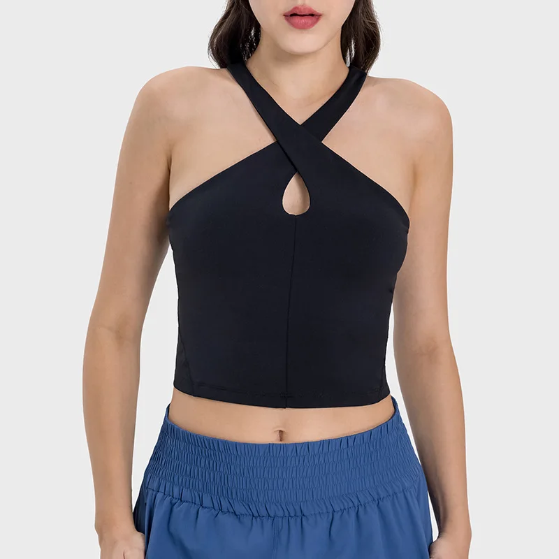 Detachable Chest Cushion Quick Dry Breathable Sports Vest With Cross Hanging Neck Sexy Exposed Navel Strap Plus Size Option