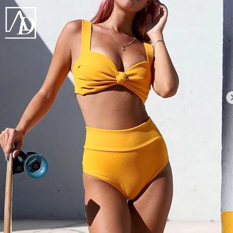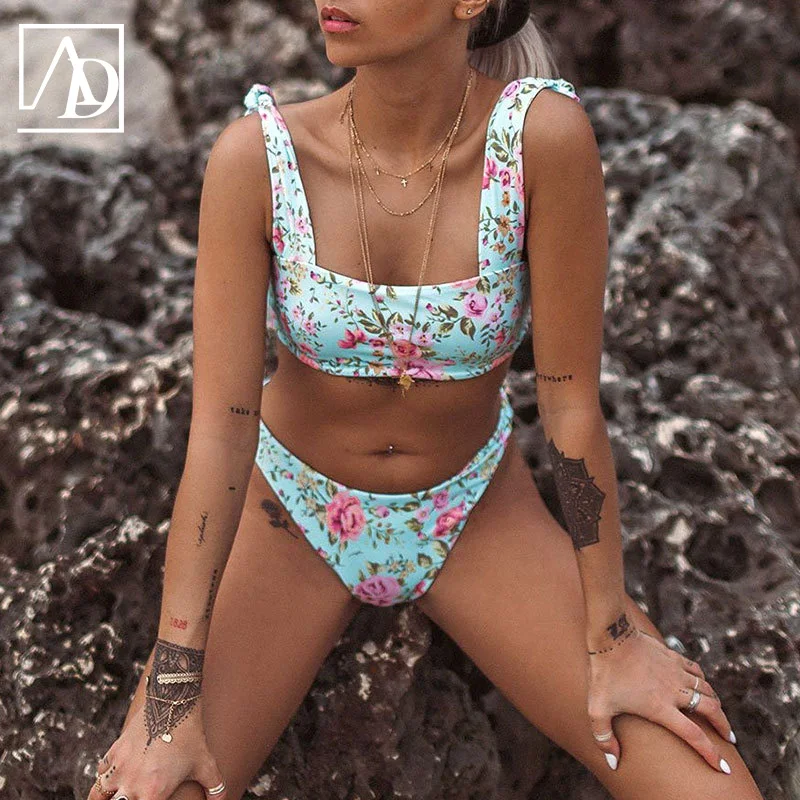 MLY Ruffle Bikini Summer Two Piece Suit Sexy Swimwear Bandage Biquini Triangle Swimsuit Printed Bathsuit