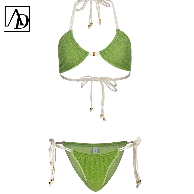 2026 New Custom Designer Metallic Swimsuit Bathing Suits One Piece Sustainable Eco Friendly Swimwear String Bikini Sexy