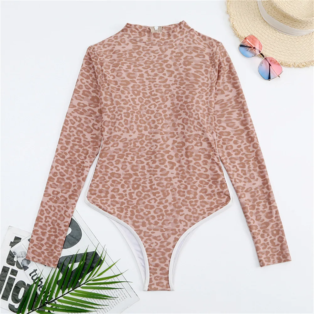 2026 New Long-sleeved Surf Suit Women's Swimsuit Zipper Leopard Print One-piece Diving Suit Swimwear