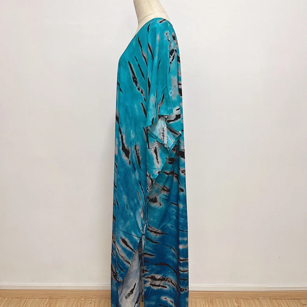 2026 Women Swimsuit Cover up Sleeve Kaftan Beach Tunic Dress Robe De Plage Print Cotton Pareo High Collar Beachwear