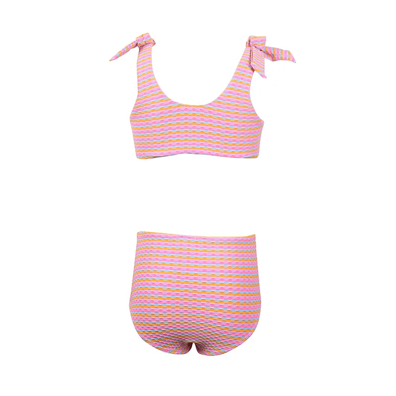Summer High Waisted Solid Print Girl 7-16 Teenagers Children's Bathing Suit Swimwear Beachwear Bikini Set