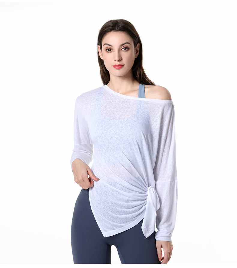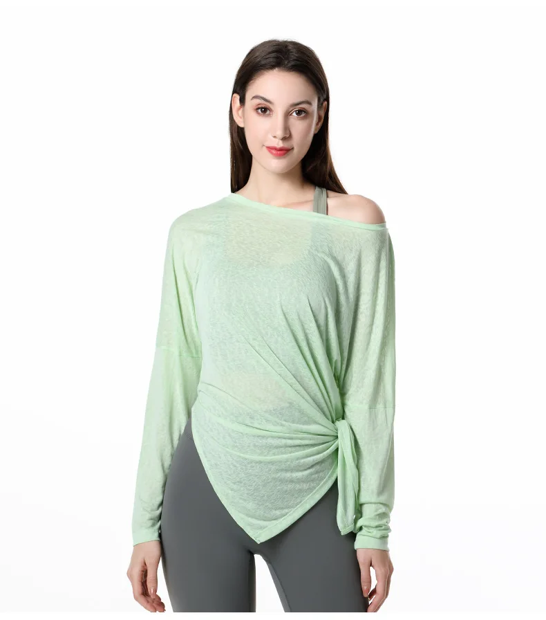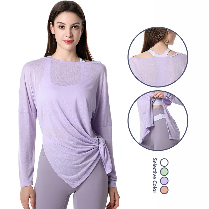 2026 New Fashion Yoga Wear Long-sleeved Top Loose Slimming Blouse Thin Moisture Absorbent Sweat and Large Size Fitness Clothes