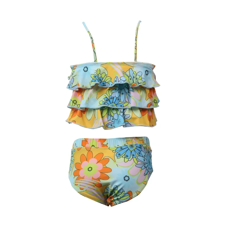 Wholesale Print Tie Dye Children Girls Kids Swimwear High Waist 13 Year Old Bikini Girls