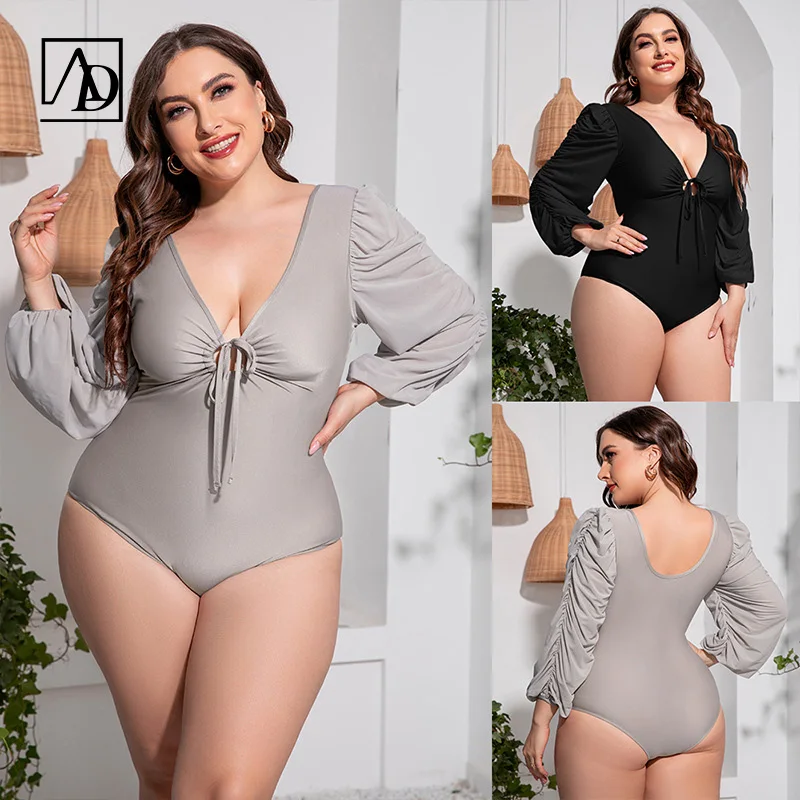 Hollow Out Solid Black Sexy V Neck One Piece Swimwear Plus Size Women Swimsuit