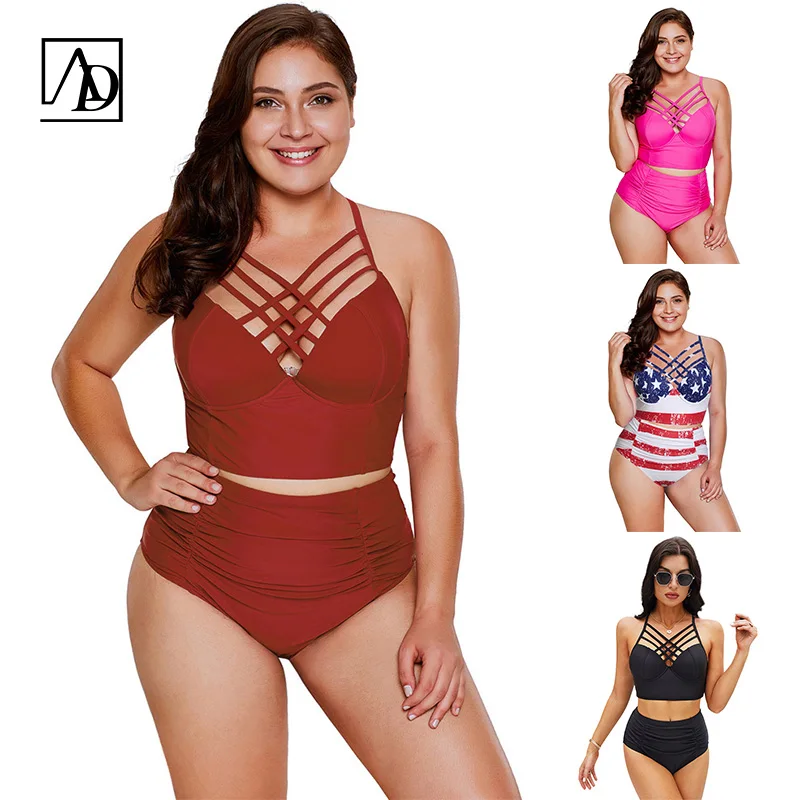 Aide Factory Plus Size Swimwear Women Two Piece Swimsuit Retro Large Two Piece Fat Bathing Suit Swimming Suit for Ladies Bikini