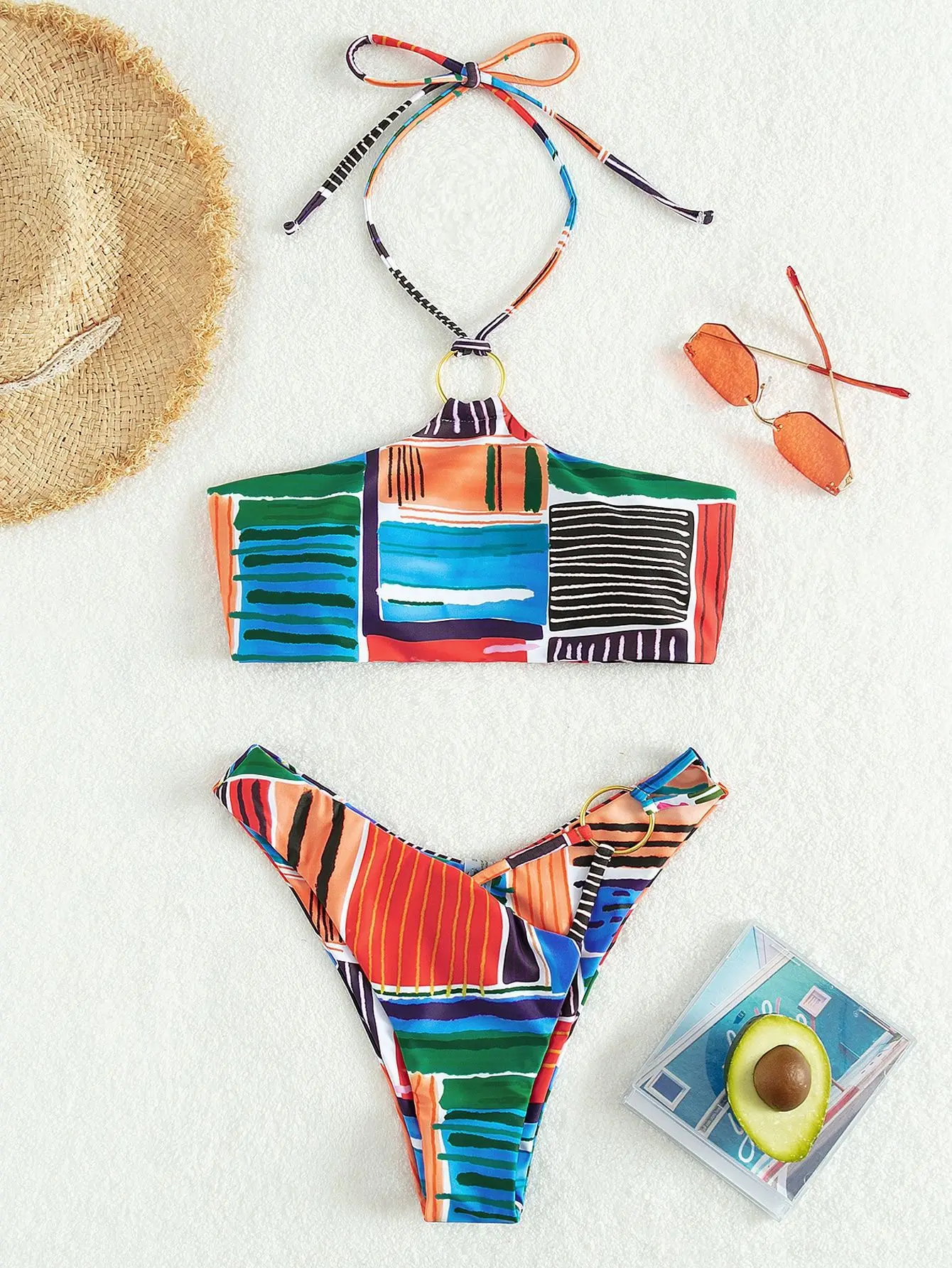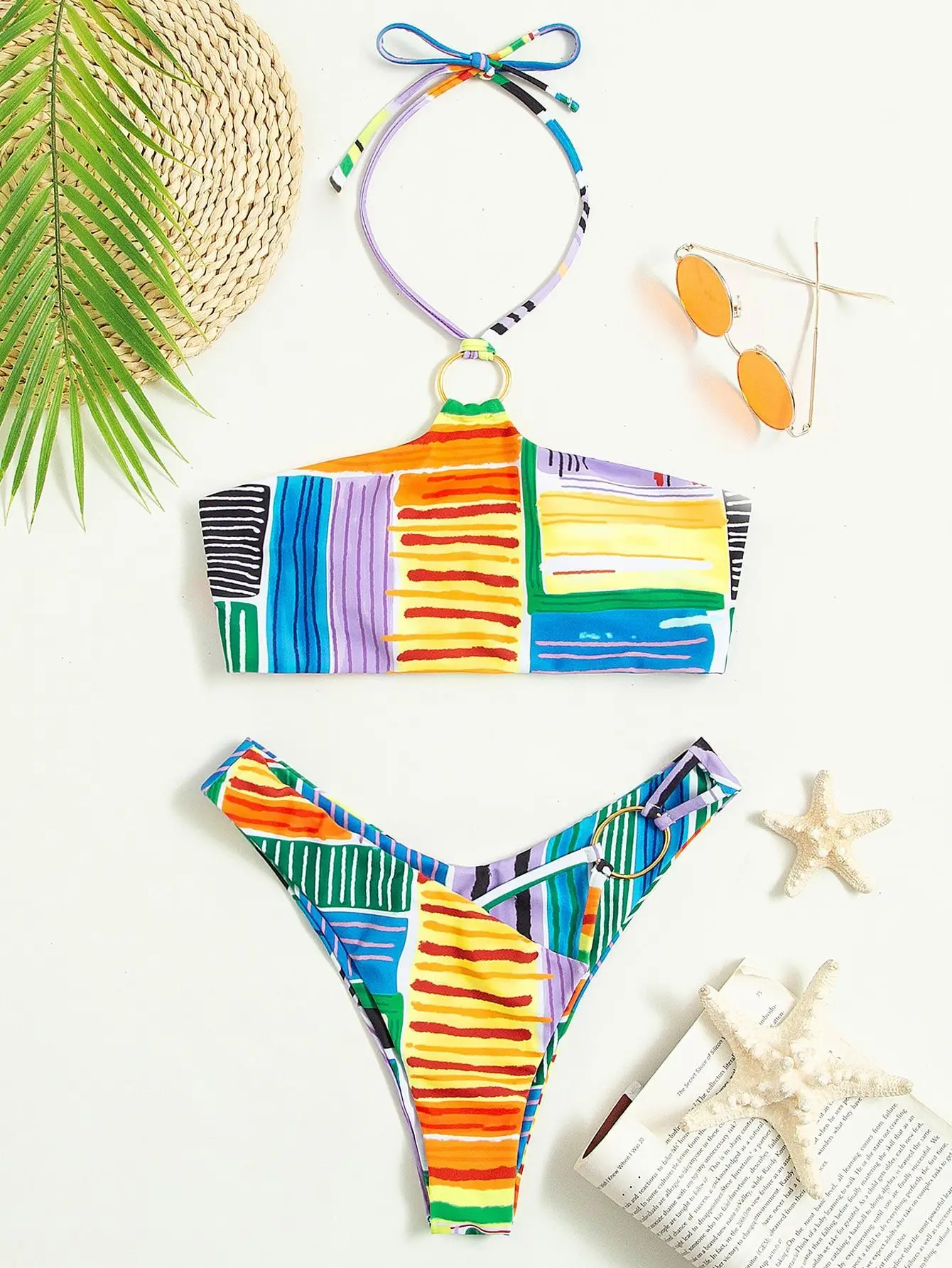 High Quality Logo Print Halter Bikini Swimsuit Adult Women's Sexy Swimwear Set