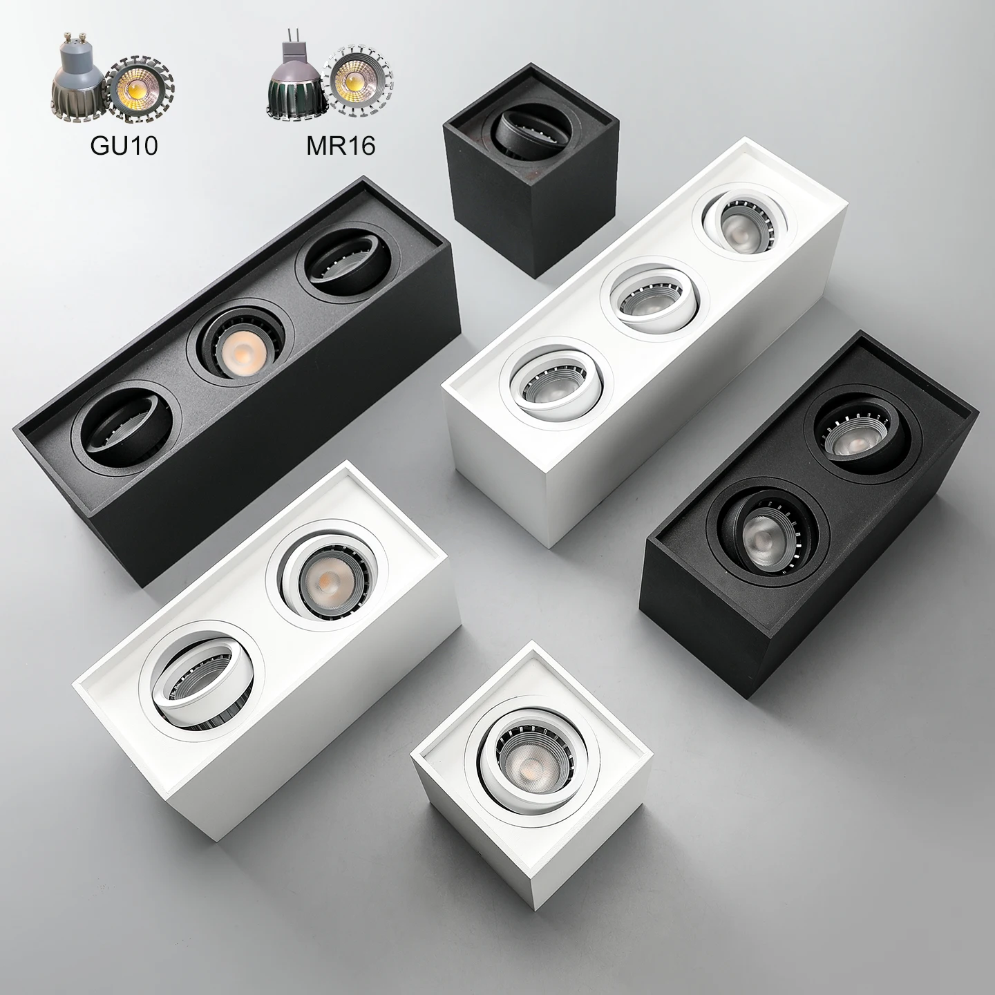 Modern 30W LED Spotlight Anti-Glare Square 24°Spot Light Fixtures Surface Mounted MR16 Base Aluminum Lamp Body for Indoor Use
