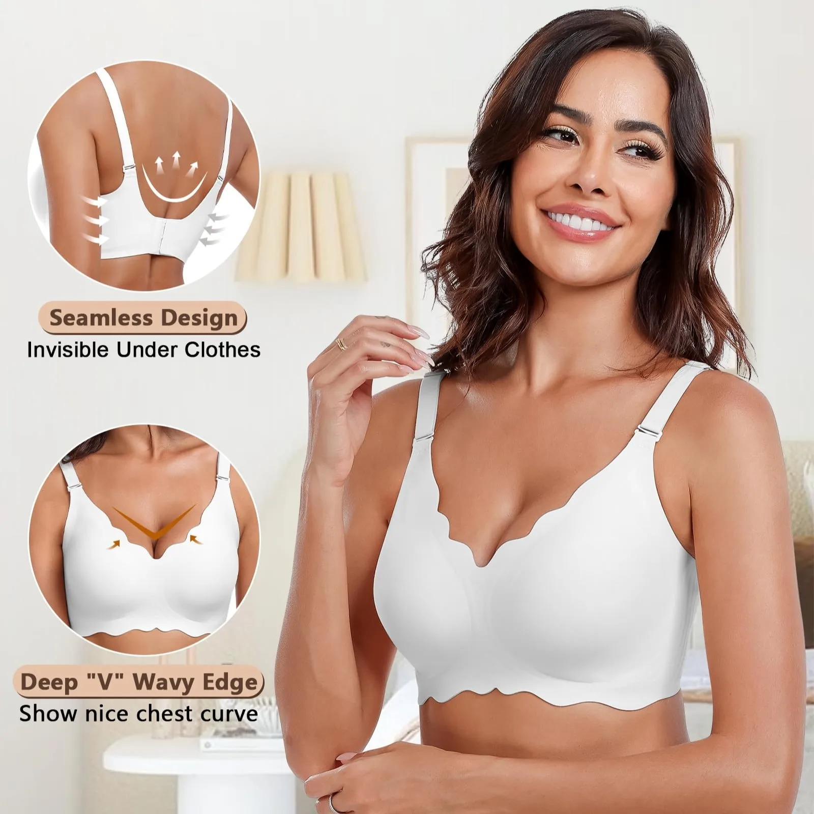 New Trend Wireless Bra for Women Custom Full Cup Ladies V Neck Support Push up Bralettes Seamless Padded Scalloped Tank Bras