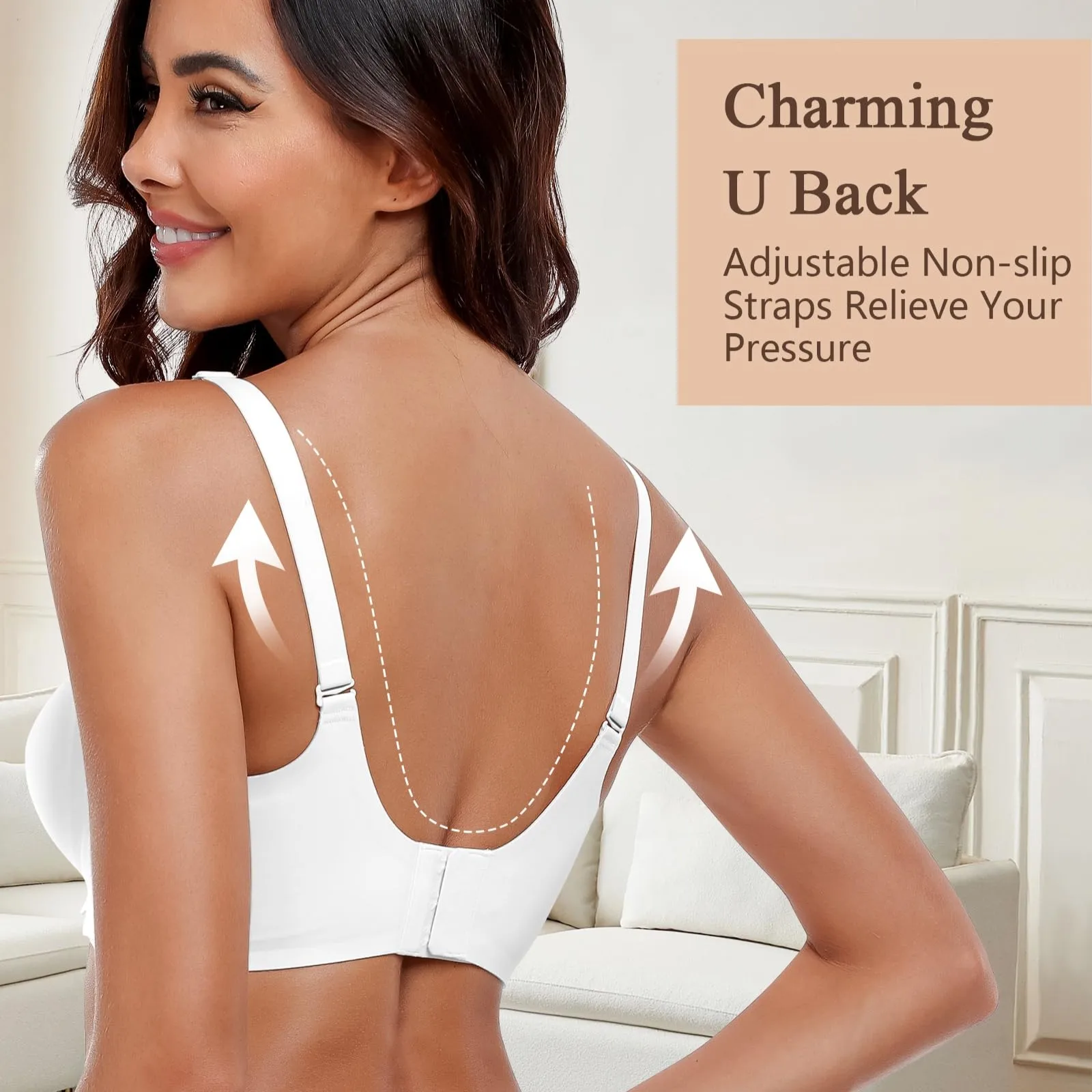 New Product Custom Full Cup Lady V Neck Support and Lift Push up Seamless Sport Padded Smoothing T Shirt Bra No Underwire