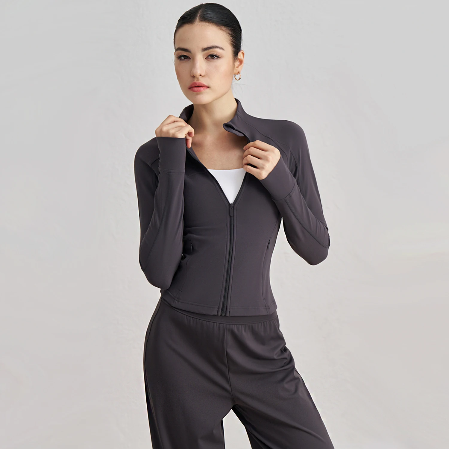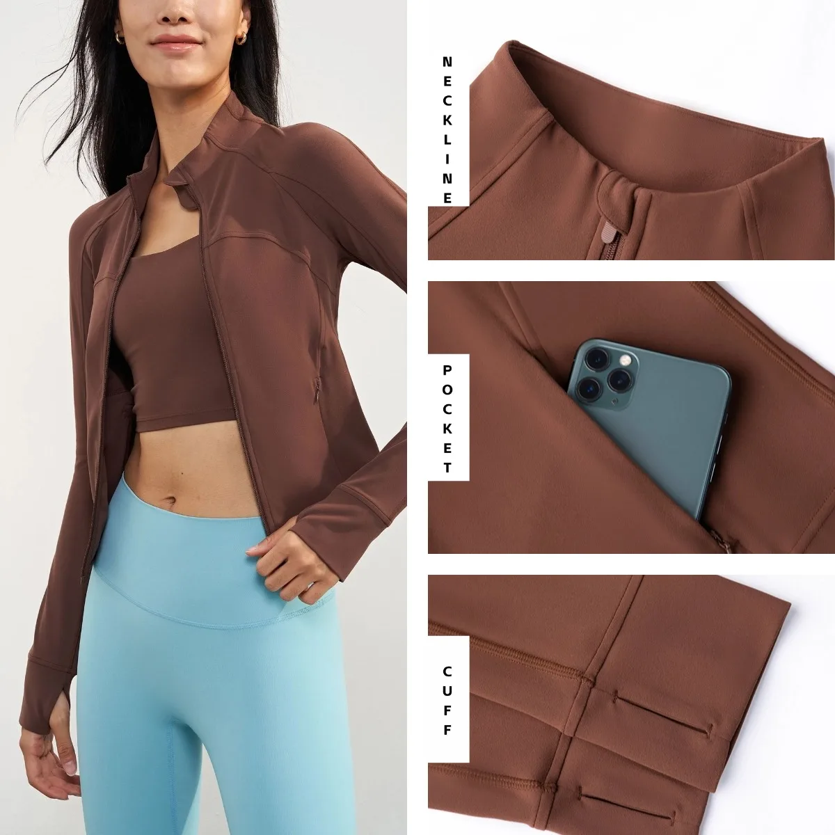 YISHENHON Custom Women's Yoga Jackets Thumb Hole Zipper Lightweight Fitness Sports Jackets Workout Yoga Clothing With Pocket
