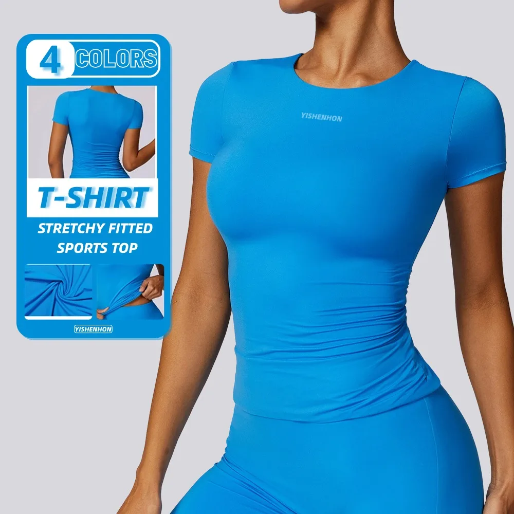 YISHENHON 2026 New Arrival Athletic Quick Dry Classic Blank Running Fitness Sport Femme Top Tight Short Sleeve Yoga Tshirt