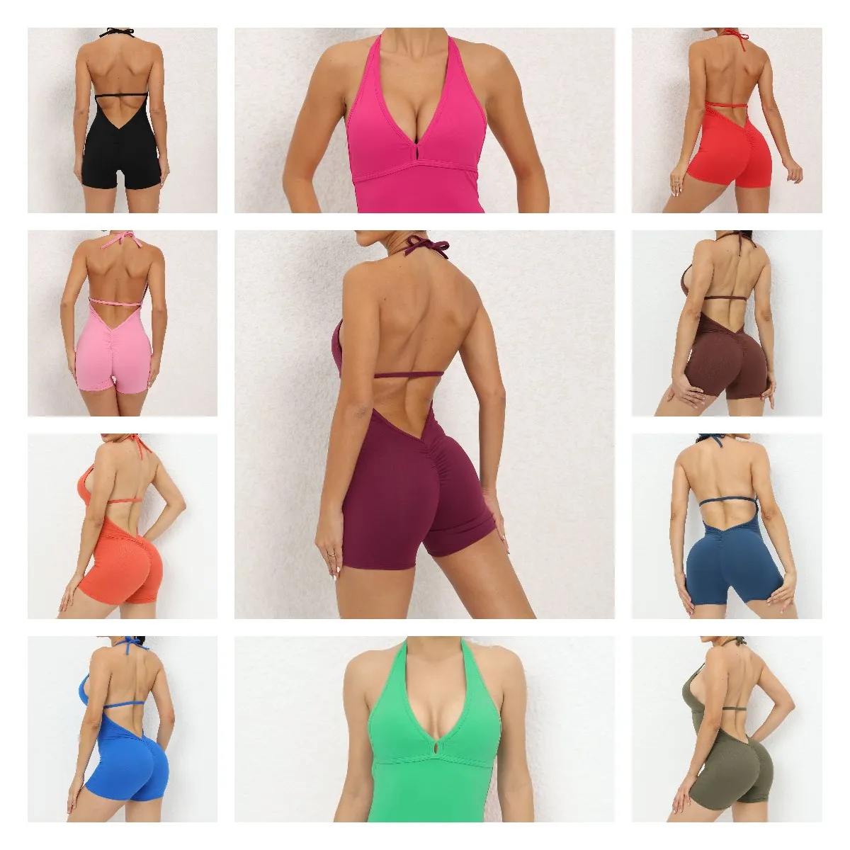 YISHENHON Soft V-neck Women Yoga Backless Jumpsuit Workout Catsuit Bodysuit Sleeveless Gym Bodycon Romper Sportswear