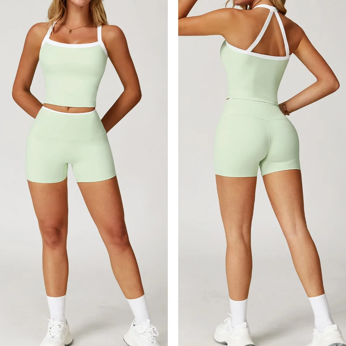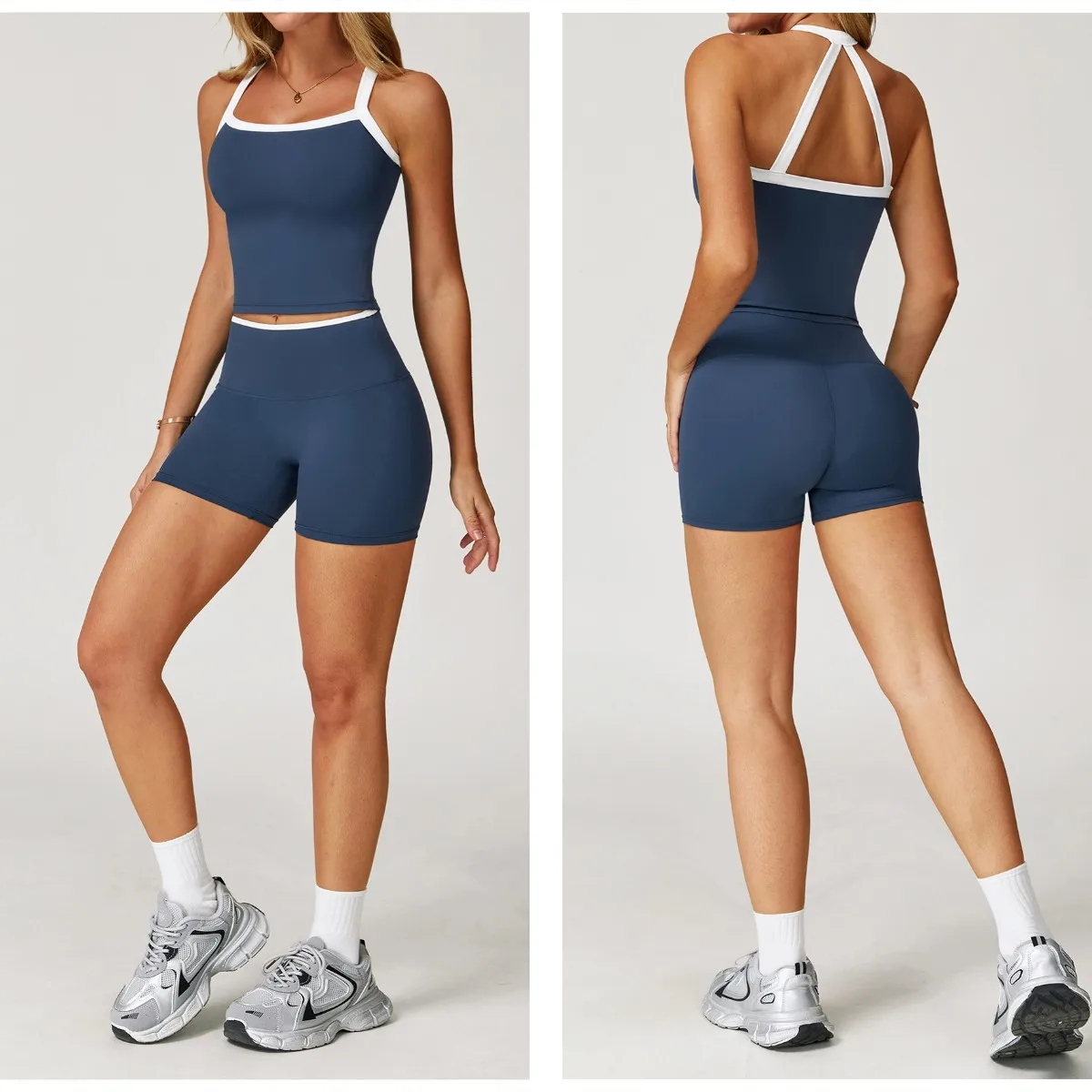 YISHENHON Wholesale Supports Active High Waist Gym Sports Fitness Yoga Shorts for Womens Color Block Butt Lift Clothing