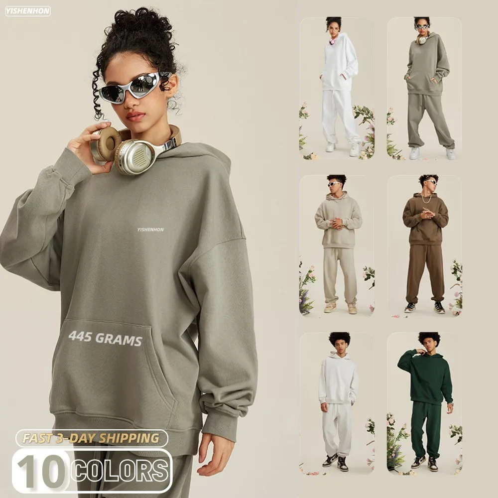 YISHENHON Hooded and Pants Custom Design Unisex Crewneck Sweatshirt Men Wholesale High Quality French Terry Two Piece 445 Grams
