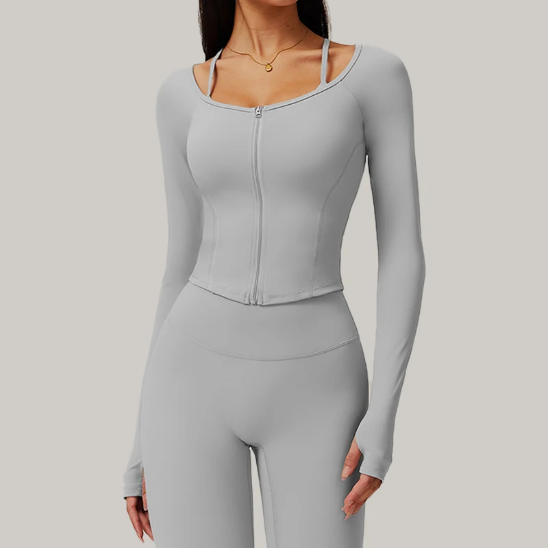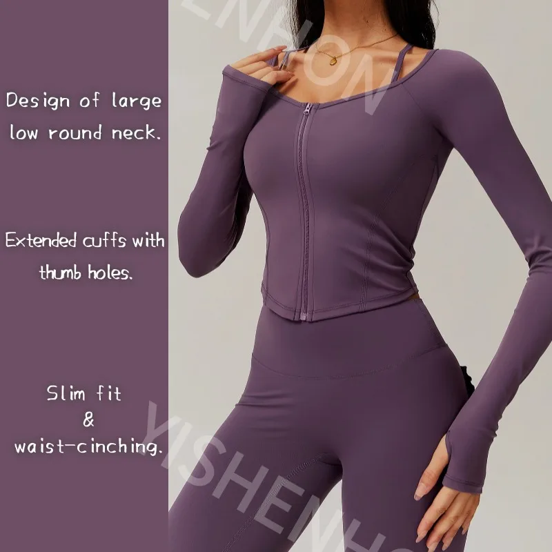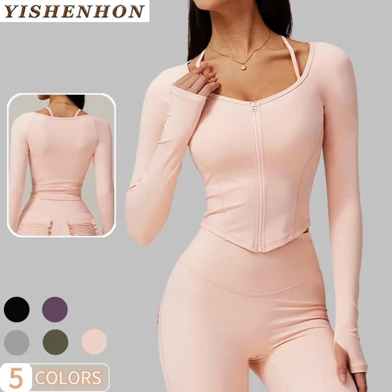 YISHENHON New Arrivals Quick-drying Women's Tight Running Sports Fitness Yoga Jacket Activewear Zip Long Sleeve Workout Crop Top