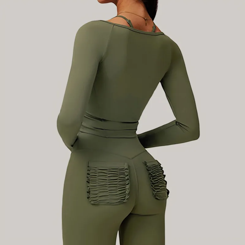 YISHENHON Cross Waist Pocket Fitness Gym Pants Sportswear Recycled Fabric Women Leggings Tight Running Seamless Yoga Pants