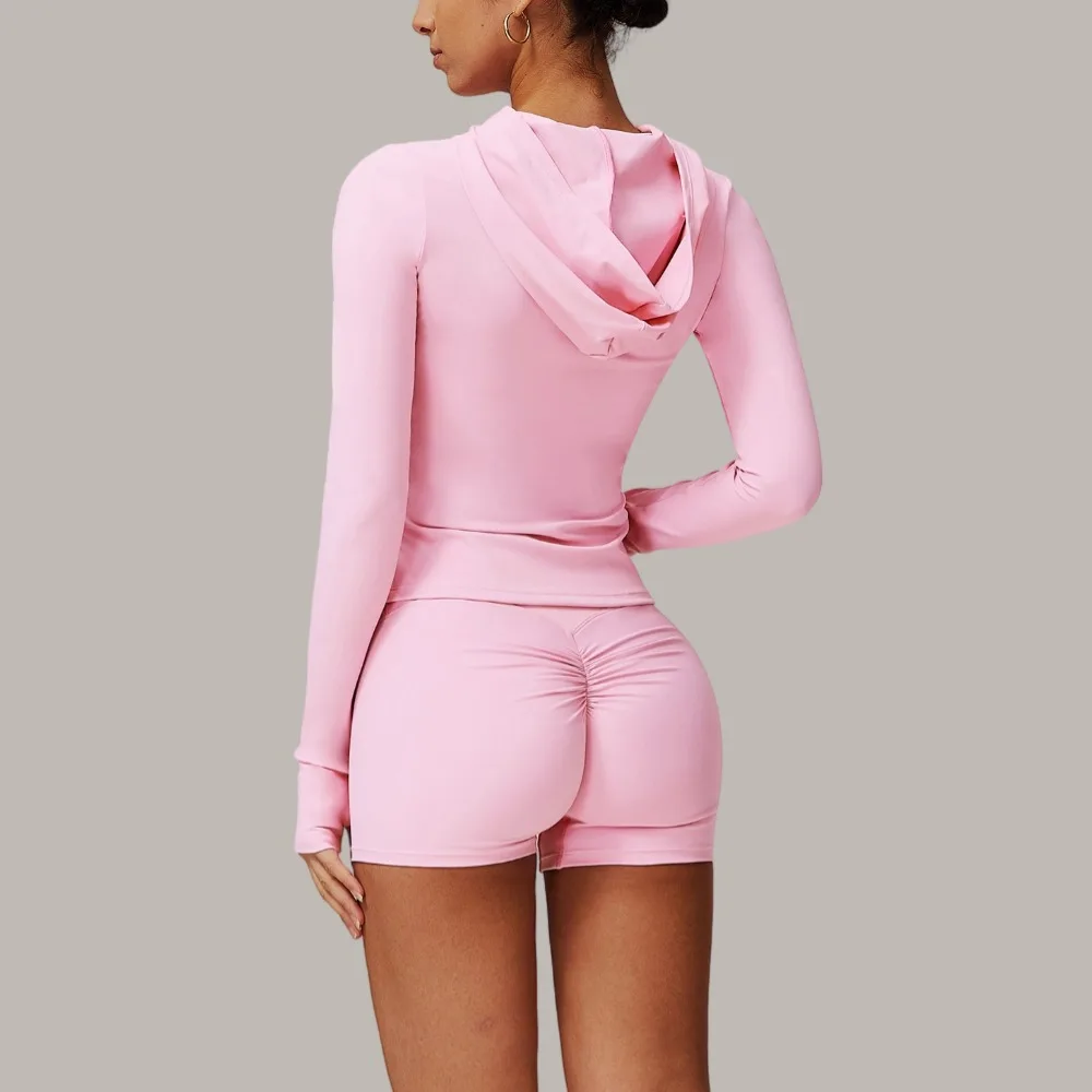 YISHENHON Custom Logo Slim Workout Top Yoga Jackets Zipper Womens Tight Quick Dry Long Sleeve Yoga Sports Coat With a Hat