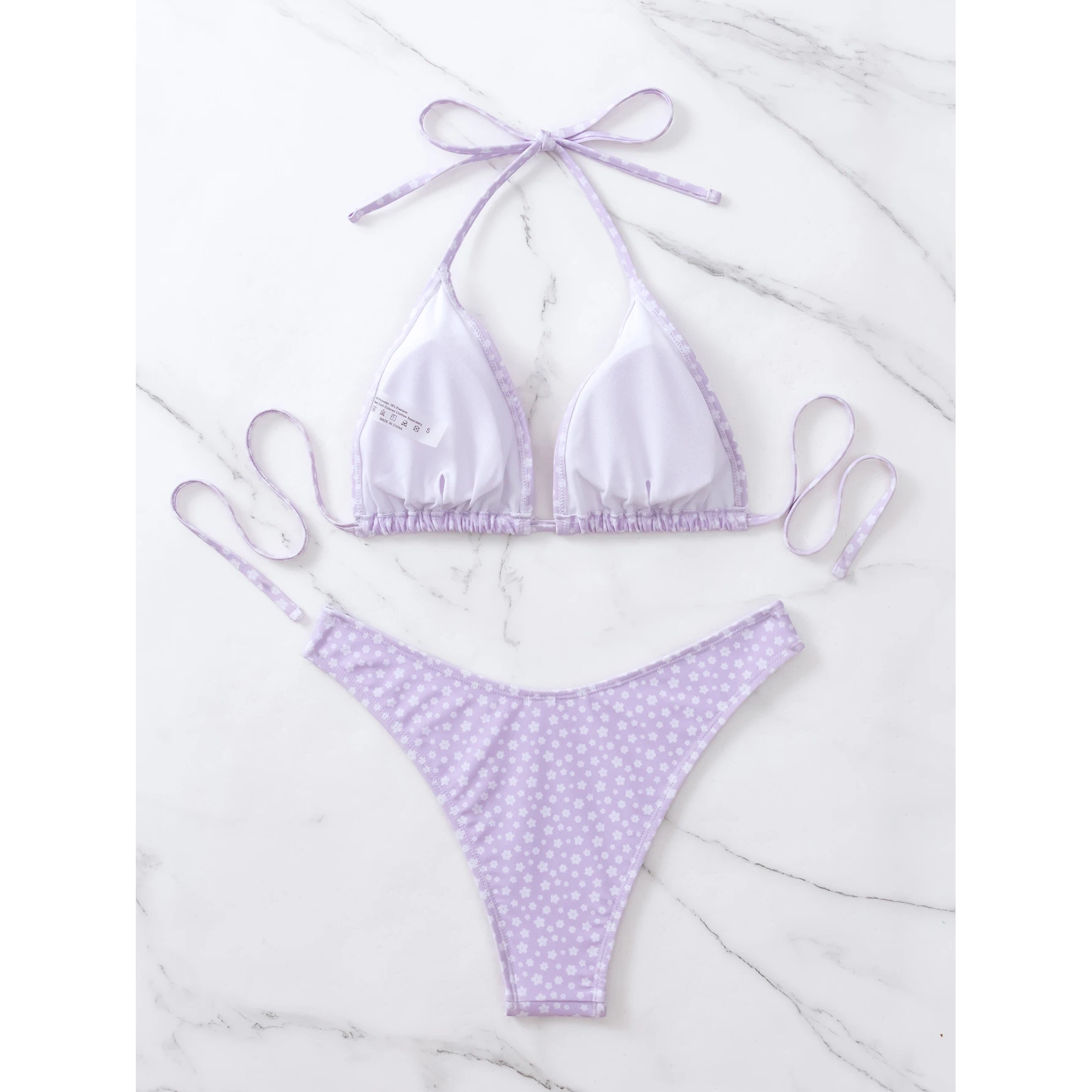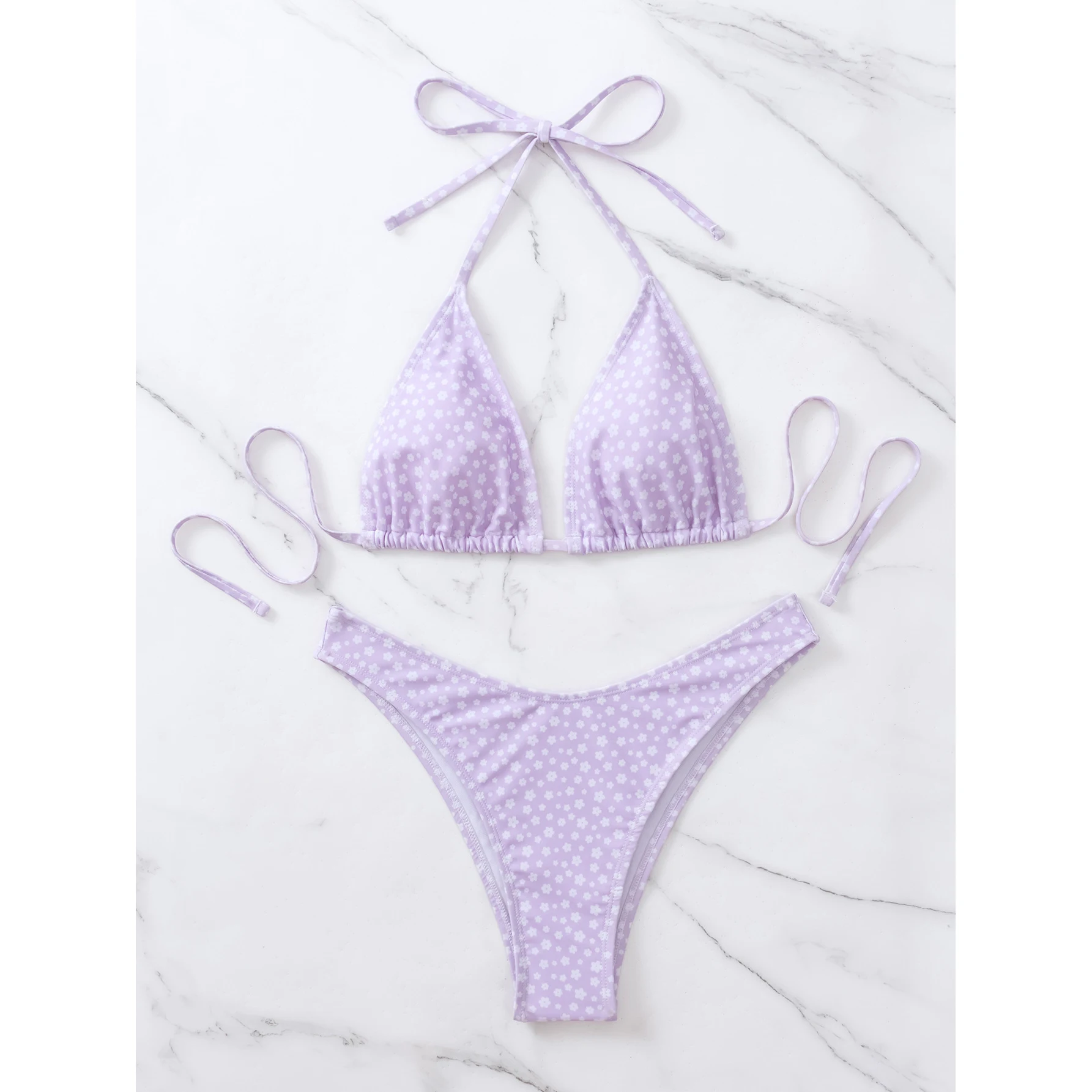 MLY Ruffle Bikini Summer Two Piece Suit Sexy Swimwear Bandage Biquini Triangle Swimsuit Printed Bathsuit