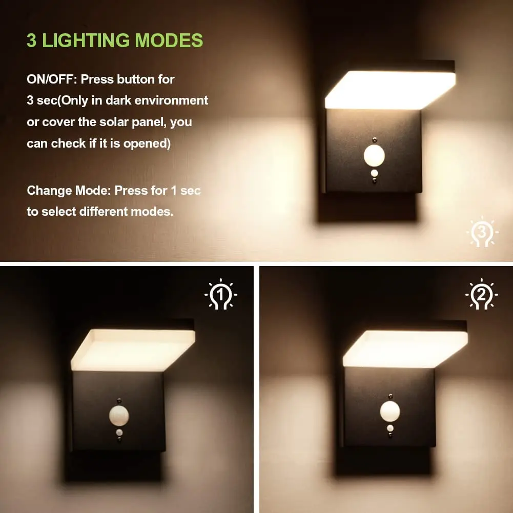 Vertak Garden Solar Wall Lights Smart Lighting Led Wall Lights with Monocrystalline Solar Panel