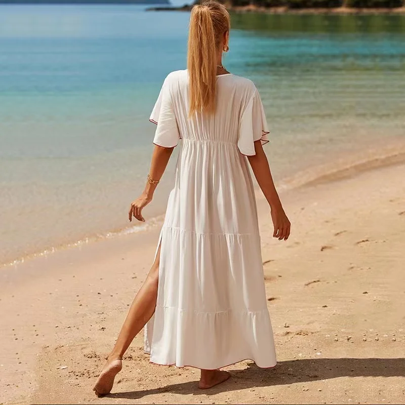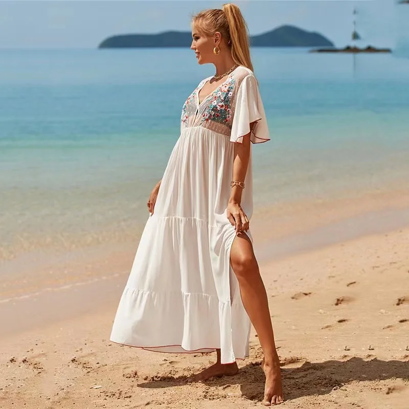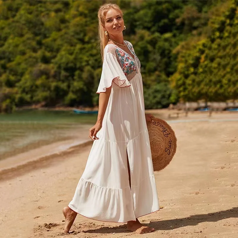 Sexy Long Kimono Fabric Embroidered Kaftan Beach Dress Summer Cover Ups