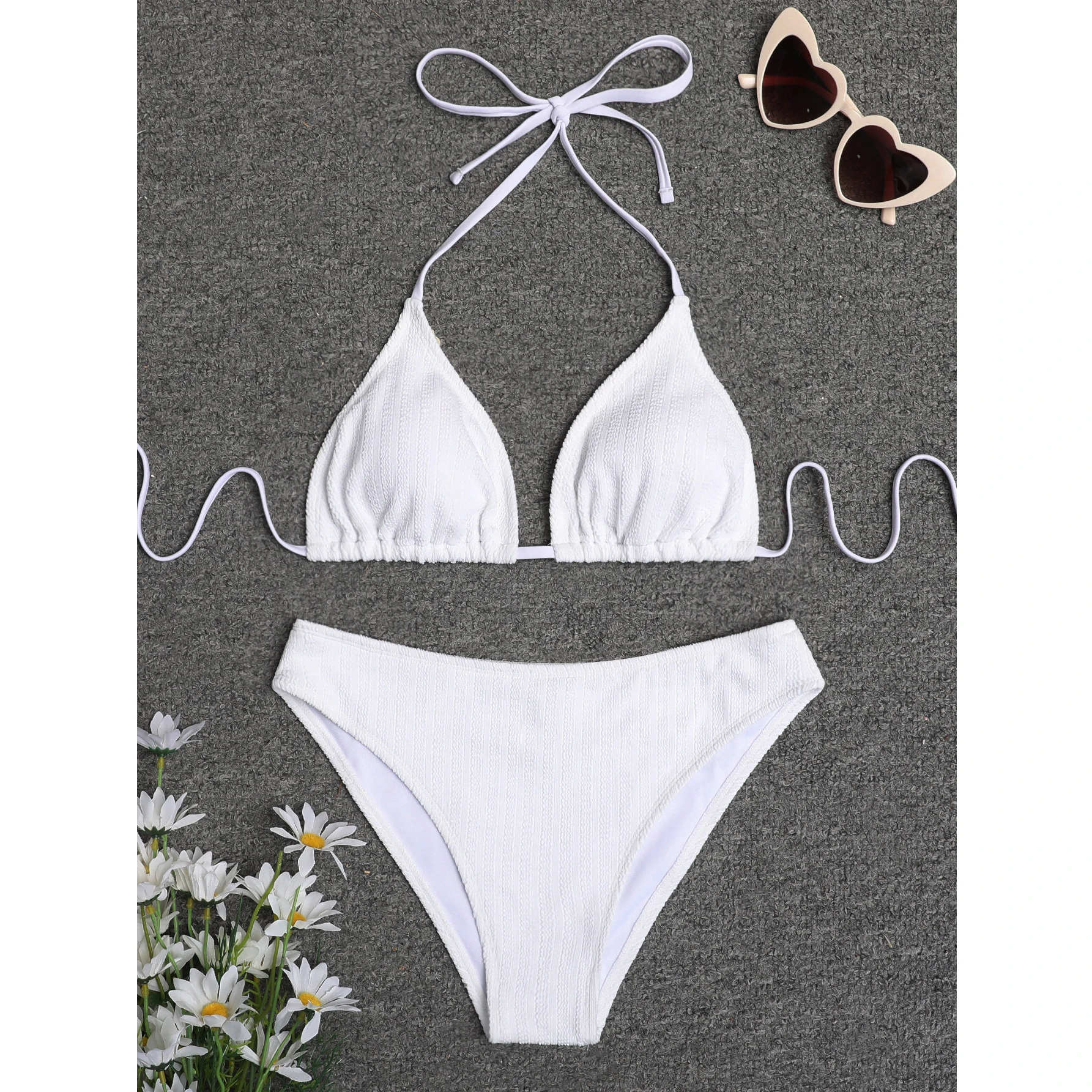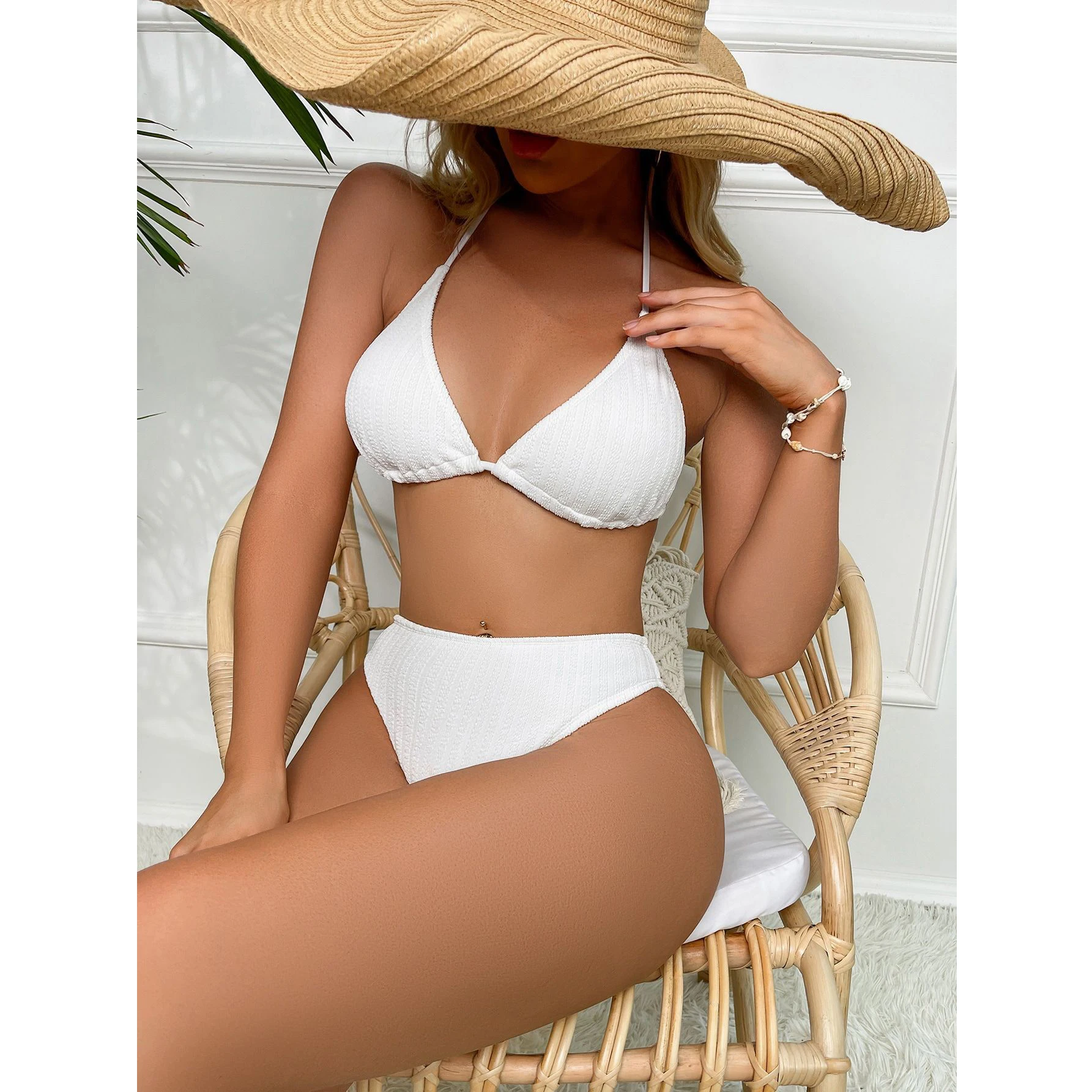 2023 New V-neck Lace up High Waist 2 Piece White Swimsuit Girls Hot Sexy Swimwear Micro Mini Bikini