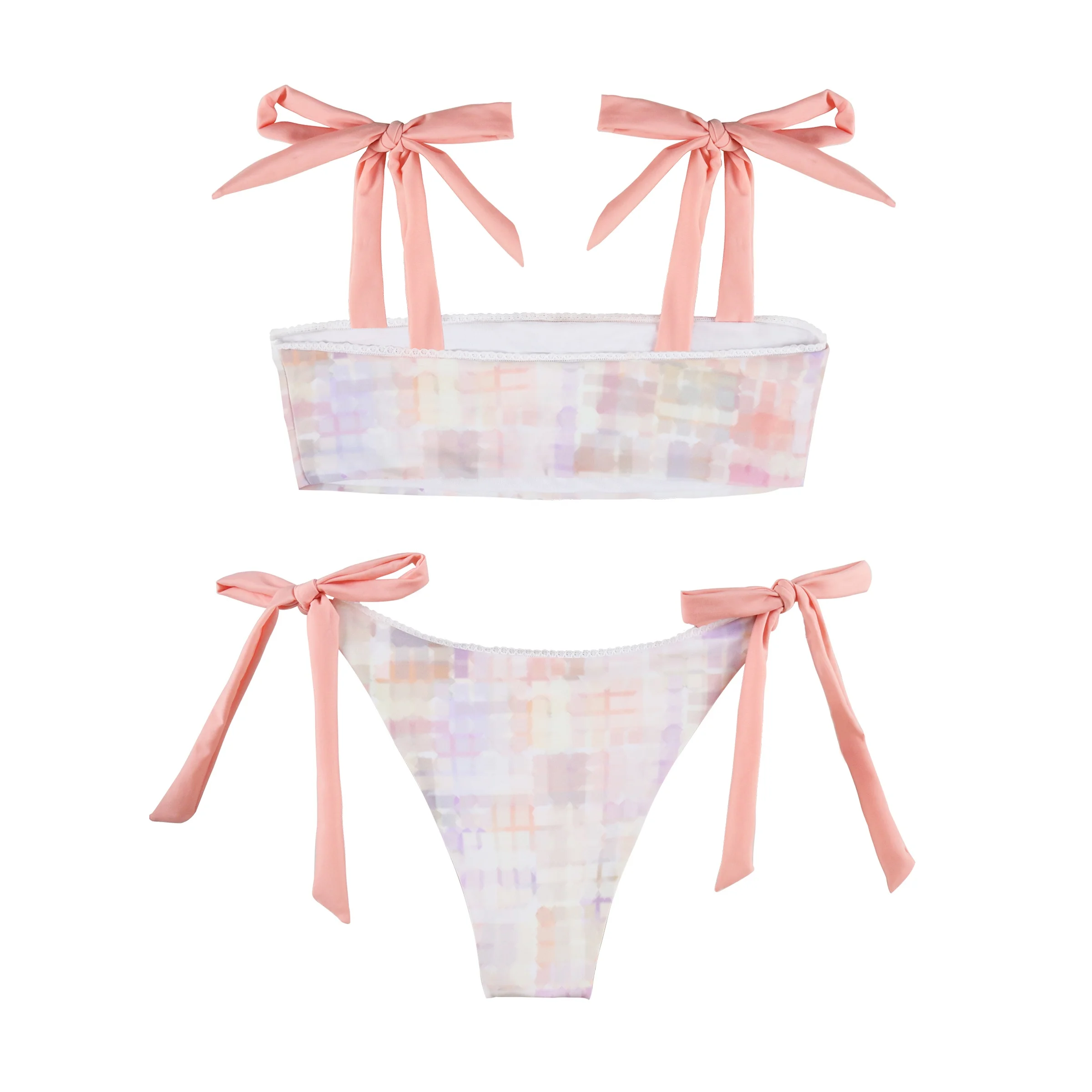 Hot Spring Beachwear Lace Side Bandeau Style Lace up Bikini Set Bathing Suit Print Swimsuits Custom Logo Swimwear XXL