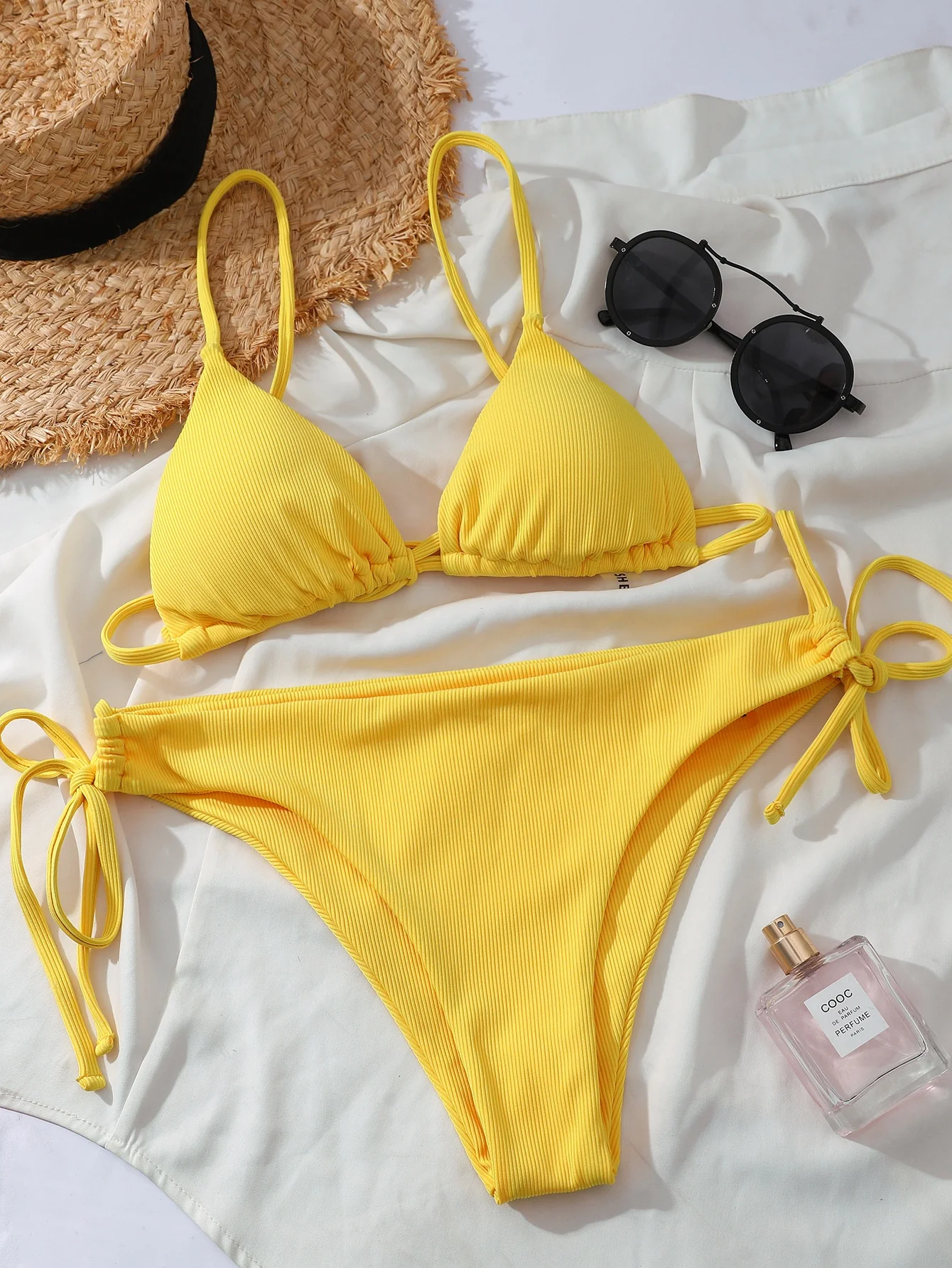 MLY Ruffle Bikini Summer Two Piece Suit Sexy Swimwear Bandage Biquini Triangle Swimsuit Printed Bathsuit