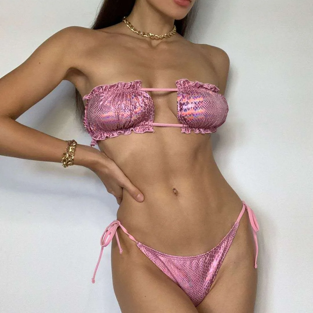 MLY Ruffle Bikini Summer Two Piece Suit Sexy Swimwear Bandage Biquini Triangle Swimsuit Printed Bathsuit