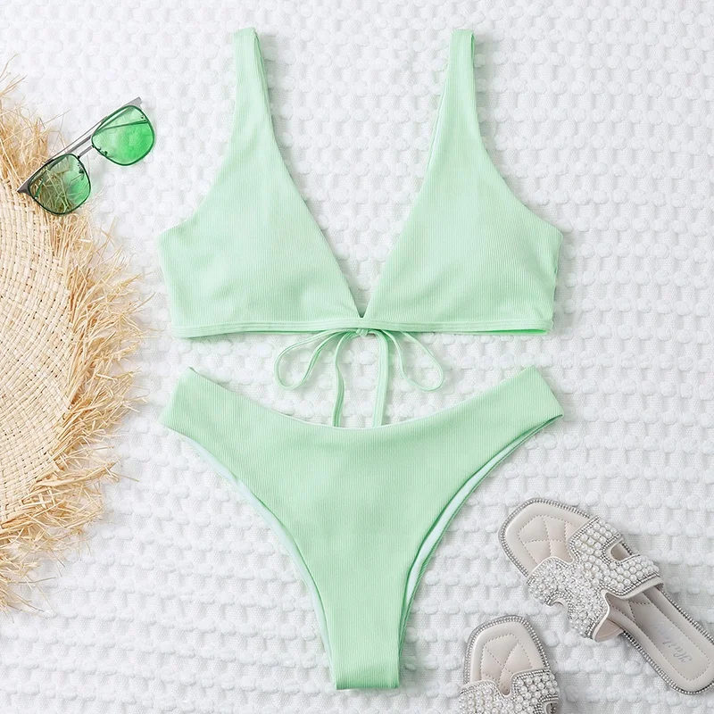MLY Ruffle Bikini Summer Two Piece Suit Sexy Swimwear Bandage Biquini Triangle Swimsuit Printed Bathsuit