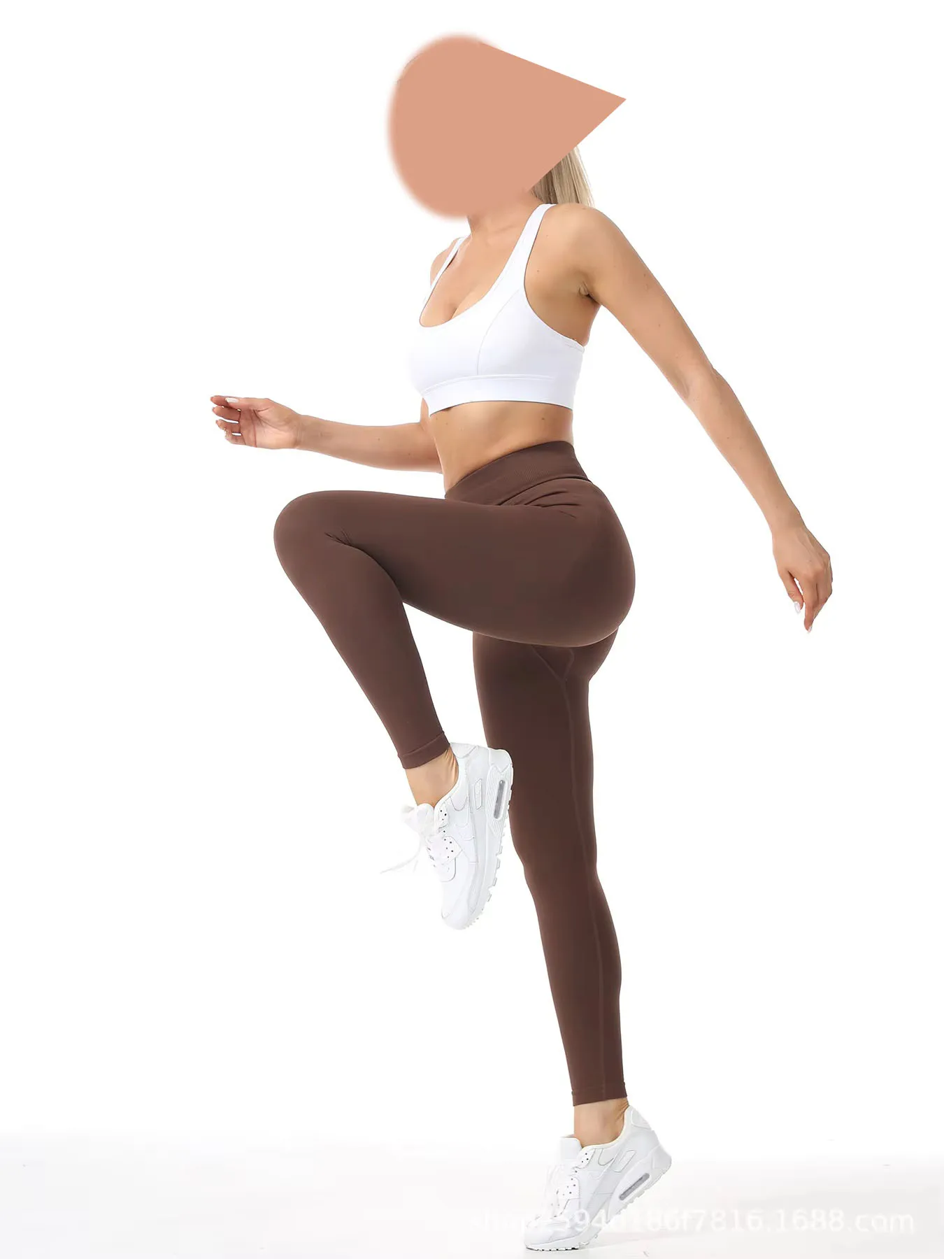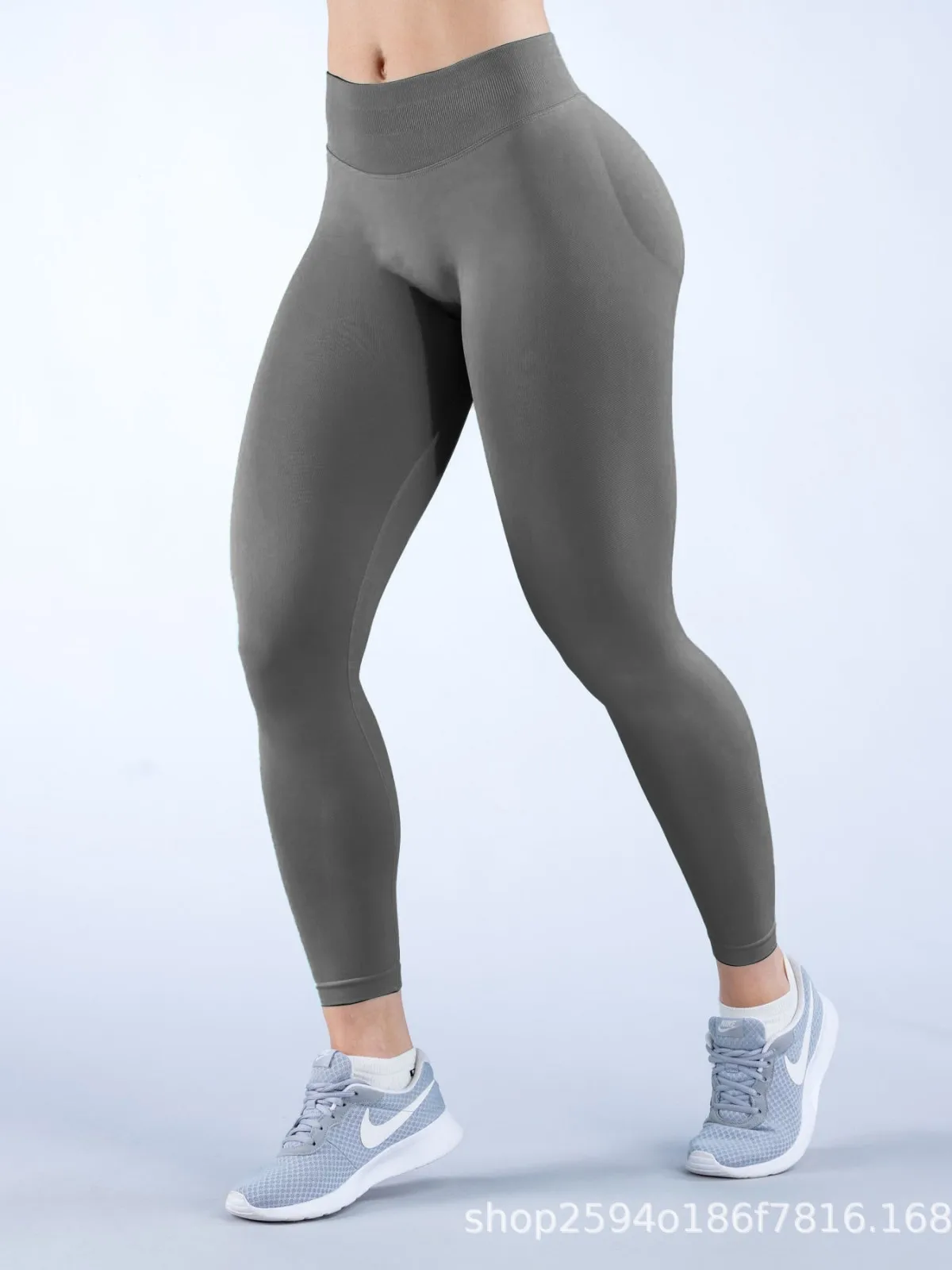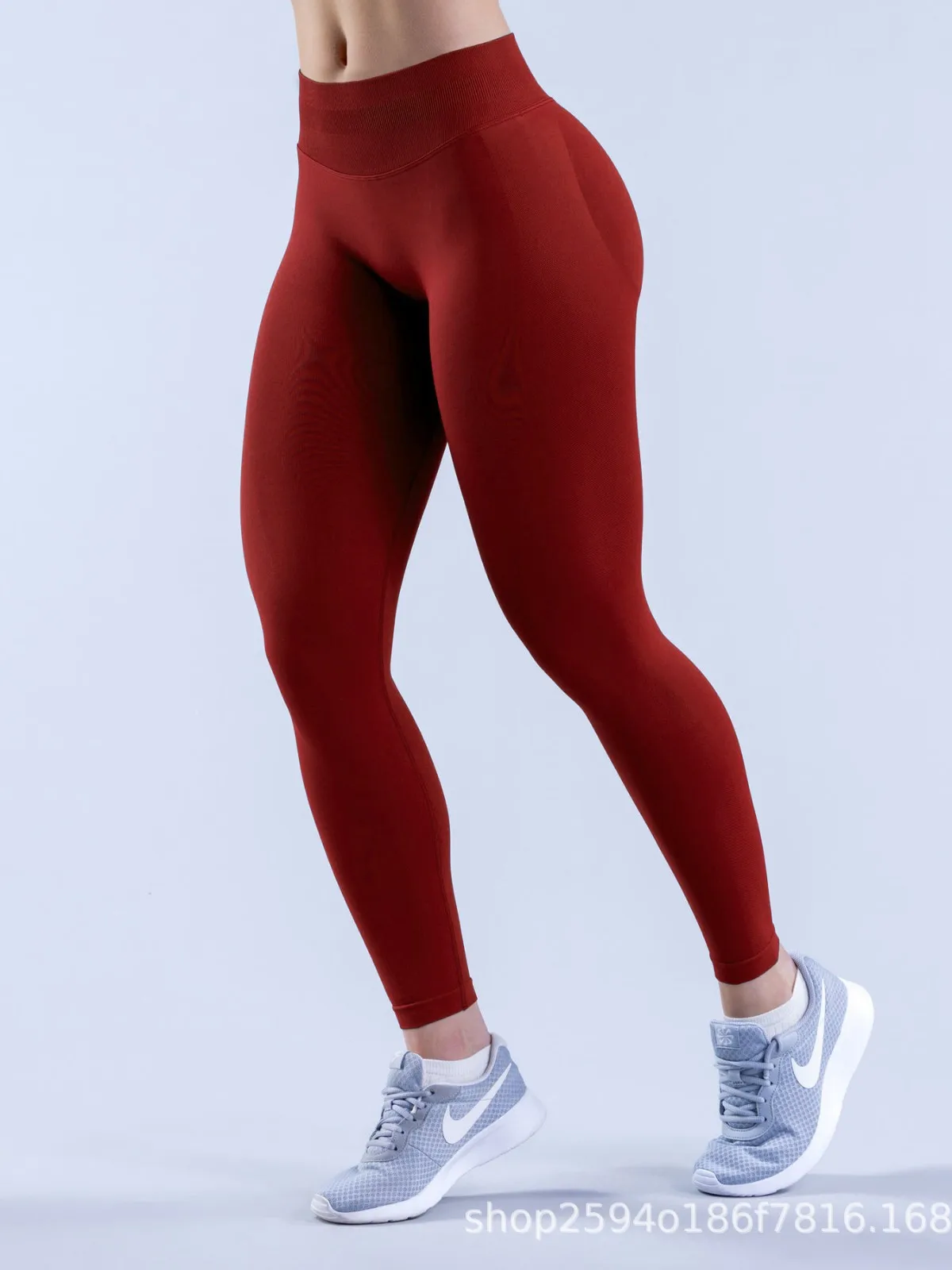 Women's Fitness Seamless Yoga Pants Solid Three-Section Waist Pleated Hip Low Waist Cross-Border Leg Length Spandex/Nylon
