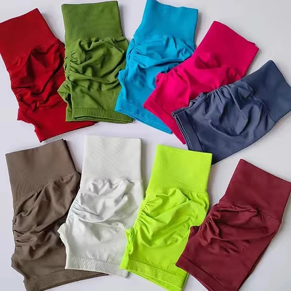European American Women's Peach-Shaped High-Waisted Sports Shorts Three-Quarter Tight Pants Elastic Waist Closure Solid Pattern
