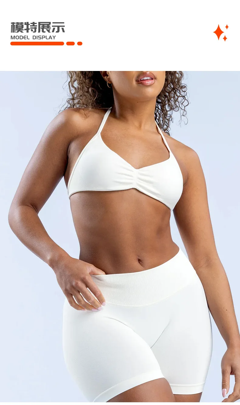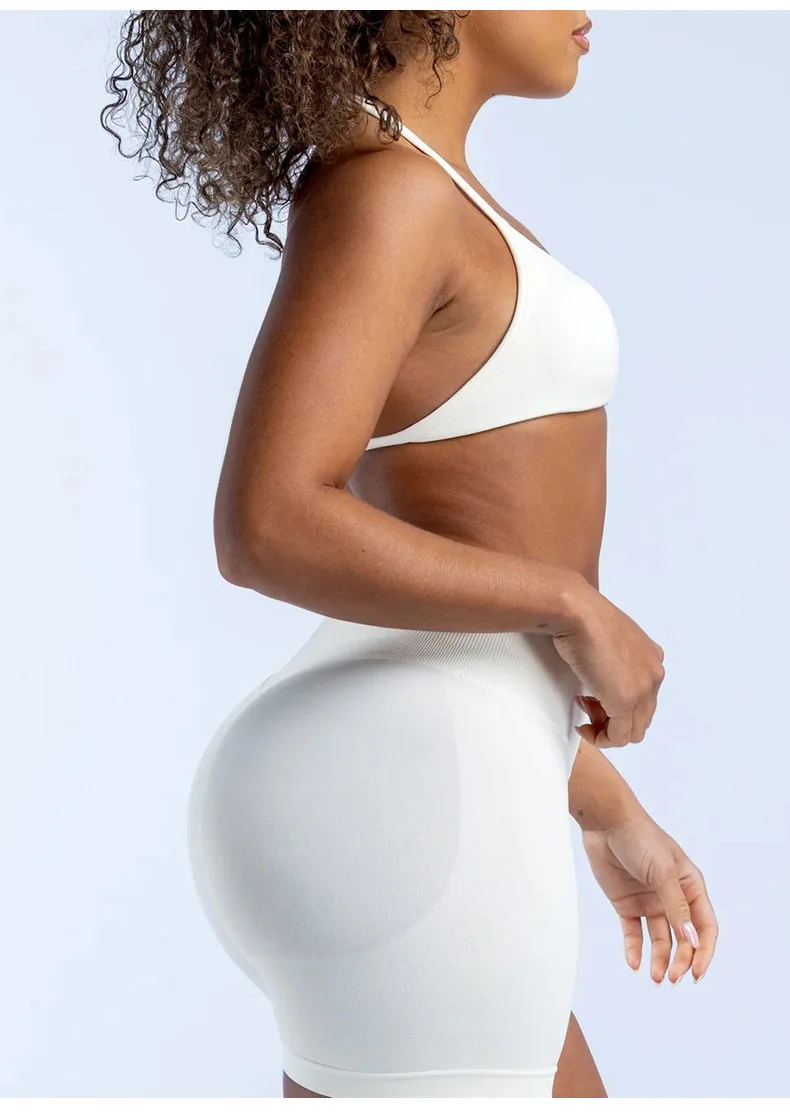 Women's 2-Piece Sports Wear Set Pleated Seamless Fitness Shorts with Adjustable Straps Breathable & Waterproof Sports Bra