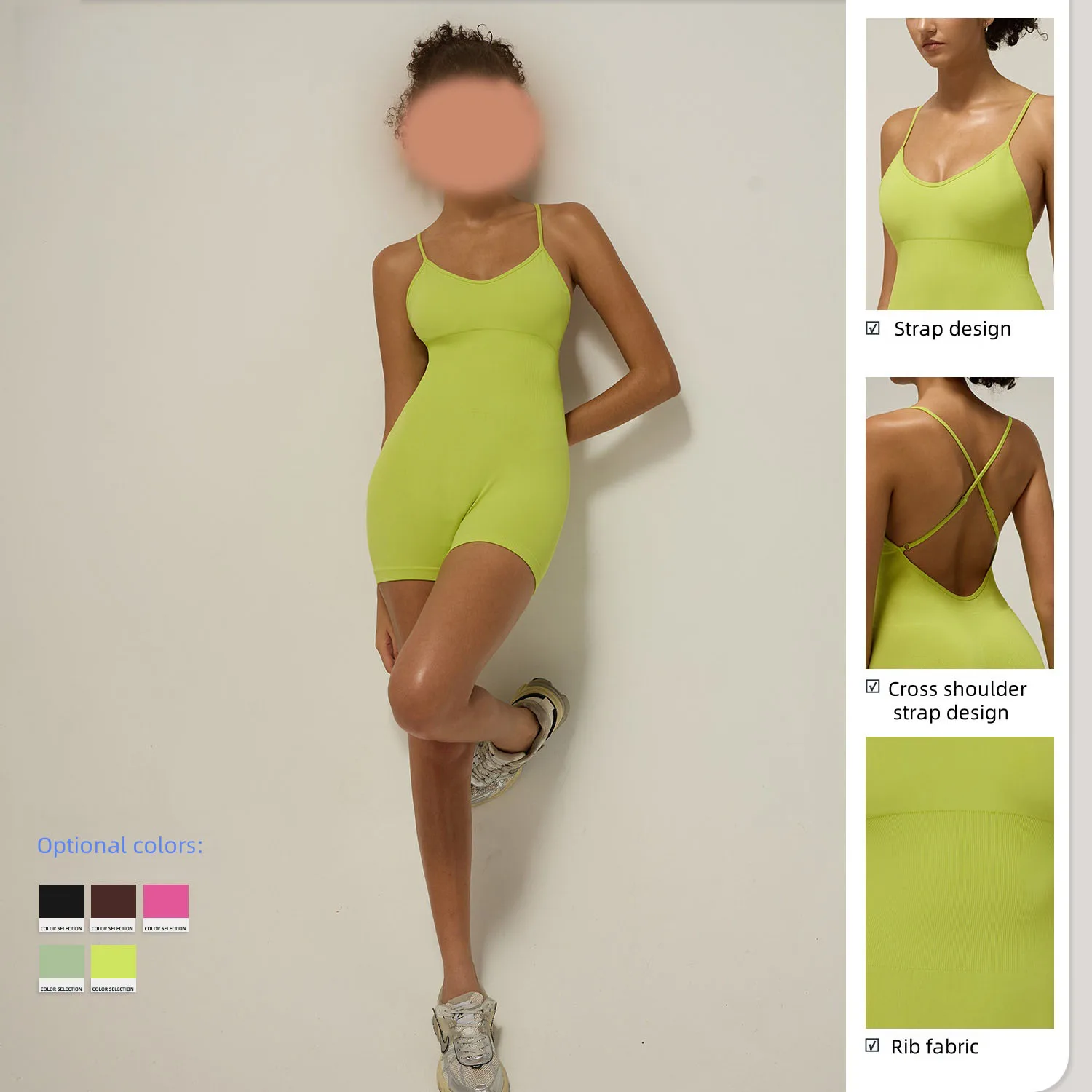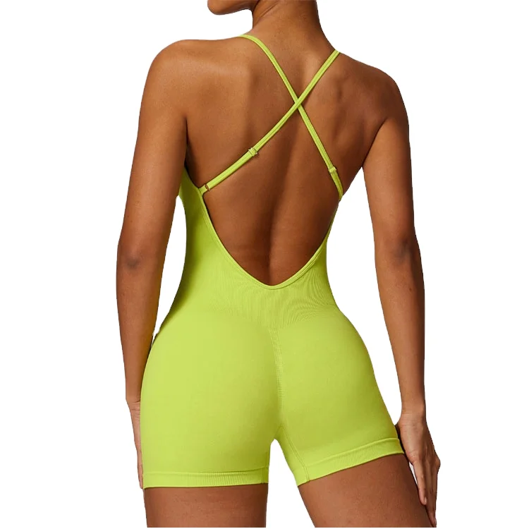 OEM ODM Solid Knitting One-Piece Plus Size Women's Jumpsuit Backless Sports Bodysuit Padded Scrunch Butt Lifting Tight Summer