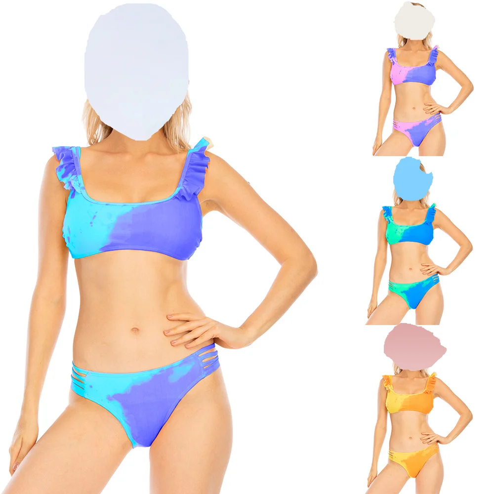 MLY Ruffle Bikini Summer Two Piece Suit Sexy Swimwear Bandage Biquini Triangle Swimsuit Printed Bathsuit