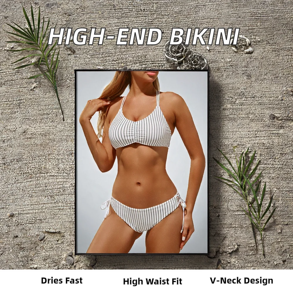 Designer Pattern Two-Piece Swimsuit High End Striped Printed Bikini Micro Style Customizable Plus Size with High Waist Bottom