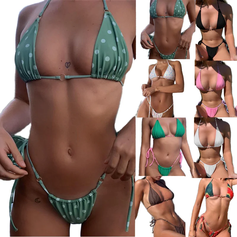 MLY Ruffle Bikini Summer Two Piece Suit Sexy Swimwear Bandage Biquini Triangle Swimsuit Printed Bathsuit