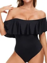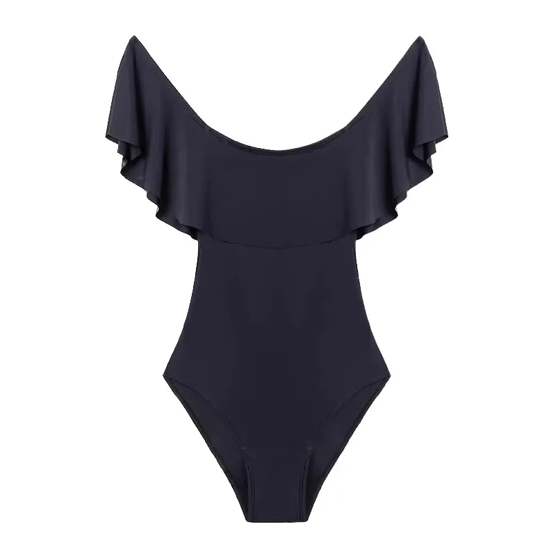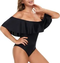 European Custom Modest Pink Off-Shoulder Bikini Swimwear XS Casual Sets Breathable Ruffle Design 1 Thongs Beach Appointments