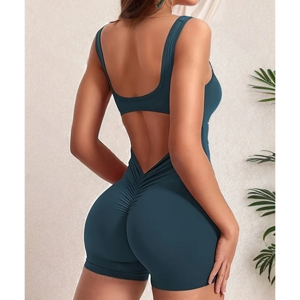 Women's Breathable One-Body Yoga Suit Solid Pattern European American Style Embarrassment Line Hollow Back Fitness Sports