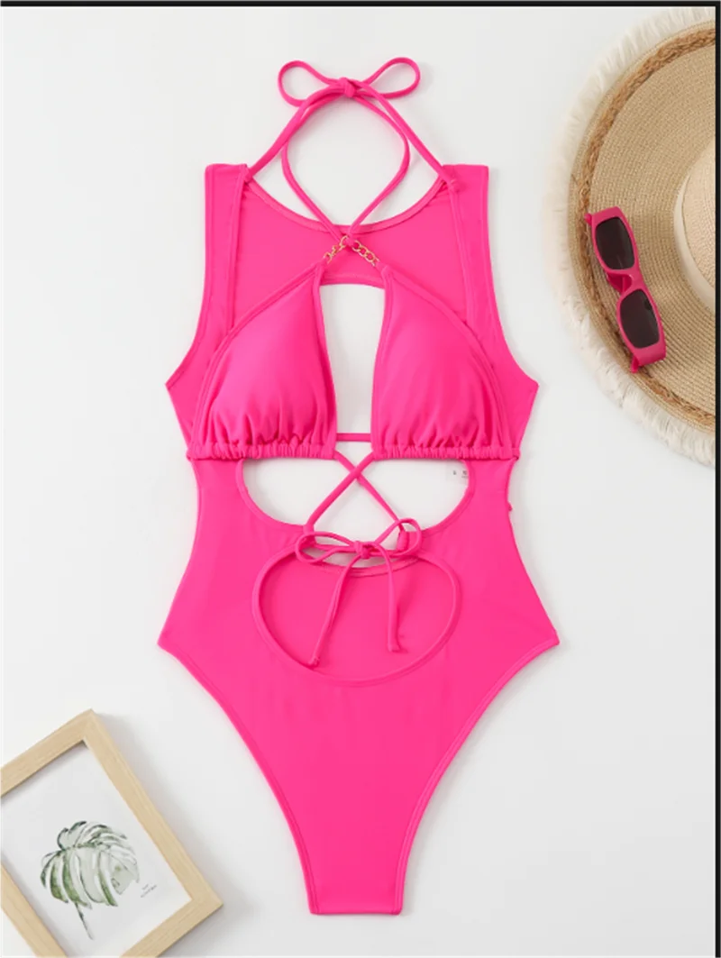 High Quality Solid Tank Bodysuit Beachwear Textured String Thong Bikini One-Piece Swimsuit Anti-Bacterial Breathable