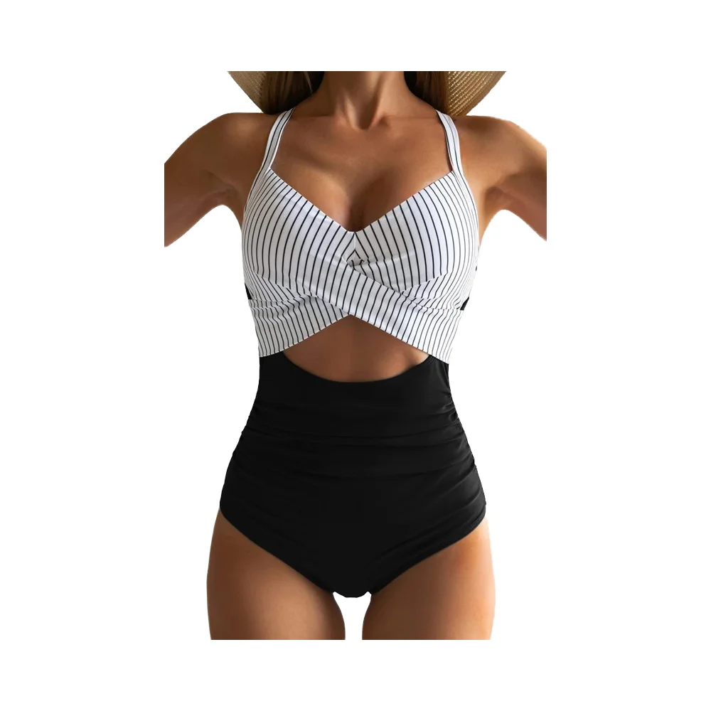 MLY Factory Wholesale Bikini Custom Sexy Bodysuit Jumpsuit Beachwear Backless Striped Print One Piece Swimwear
