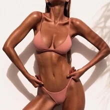 Classic Texture Two-Piece Women's Bikini Set Triangle Bra Thongs Quick Dry Polyamide Good-Looking Swimwear OEM Service Available