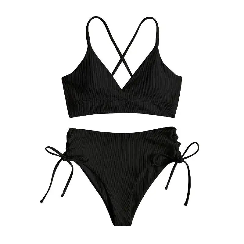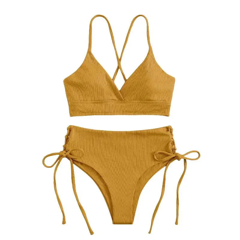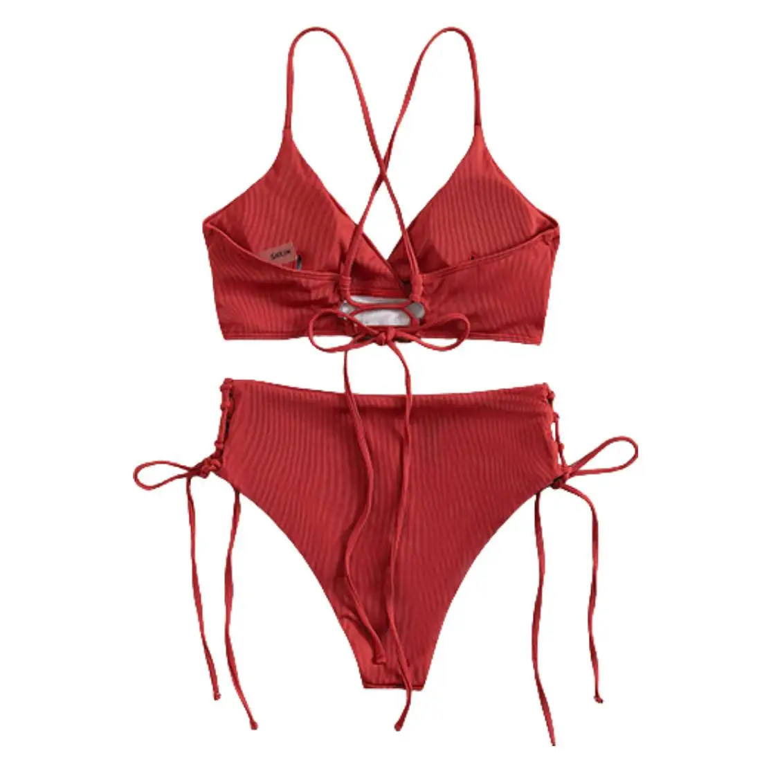 Cikini-V-Neck Split Bikini Set for Women Sexy Lace-up Triangular Swimsuit Solid Color Beach Swimwear Bathing Suit