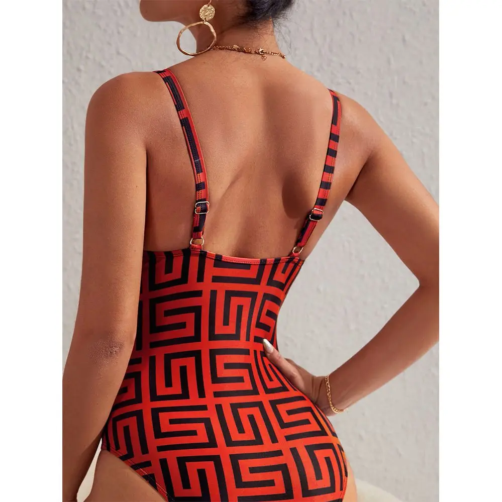 Cikini 2023 New Allover Print Chain Detail One Piece Swimsuit Sexy Beachwear Summer Beach Swimwear Bathing Suit for Women