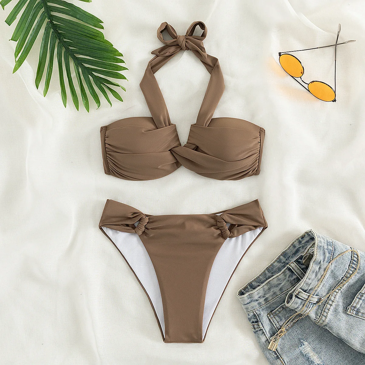 Cikini 2023 New Twist Halter Push up Bikini Swimsuit Two-Piece Bikinis Set Summer Beach Swimwear Bathing Suit for Women