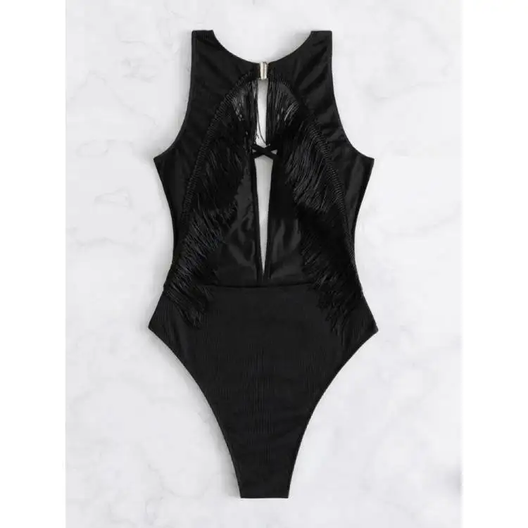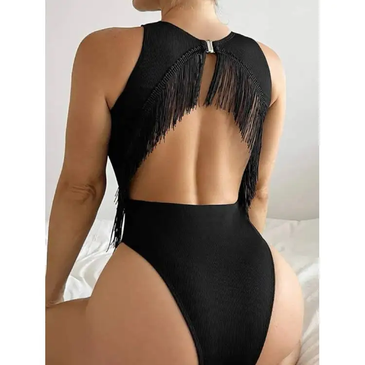 Cikini Tassel One-Piece Swimsuit Solid Beach Bikini Women's Sexy Swimwear Biquini Wholesale Bathing Suits