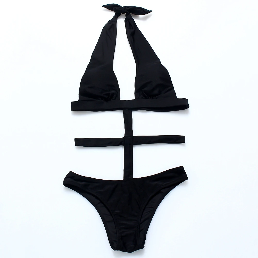 High Waist Beach Bikini Women Ladies Black Hollow Cut Out Monokini Swimsuits Wholesale Bathing Suits